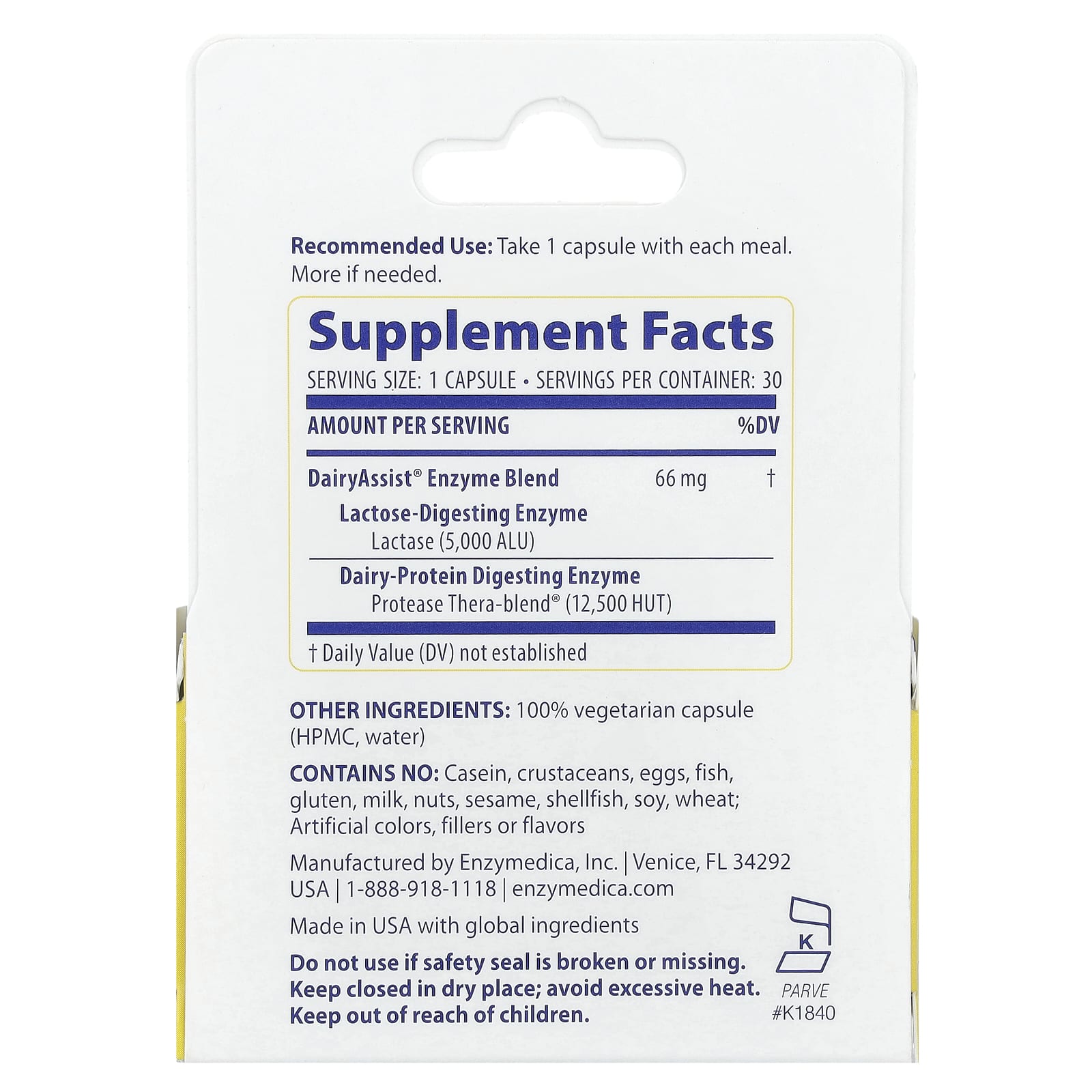 Dairy Assist® — это средство двойного действия, в состав которого входит лактаза, способствующая перевариванию лактозы, и протеаза, способствующая расщеплению казеина. Полное переваривание молочных продуктов может естественным образом уменьшить дискомфорт, связанный с непереносимостью лактозы.