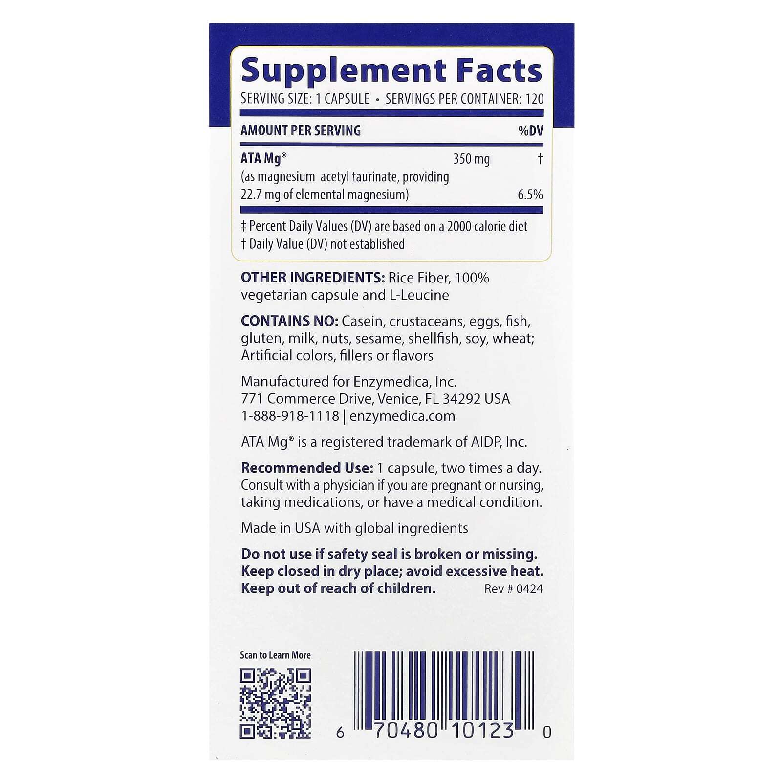 ATA Mg® — запатентованная форма магния, в которой этот мощный минерал сочетается с таурином, аминокислотой, используемой организмом для передачи ионов магния в клетки.