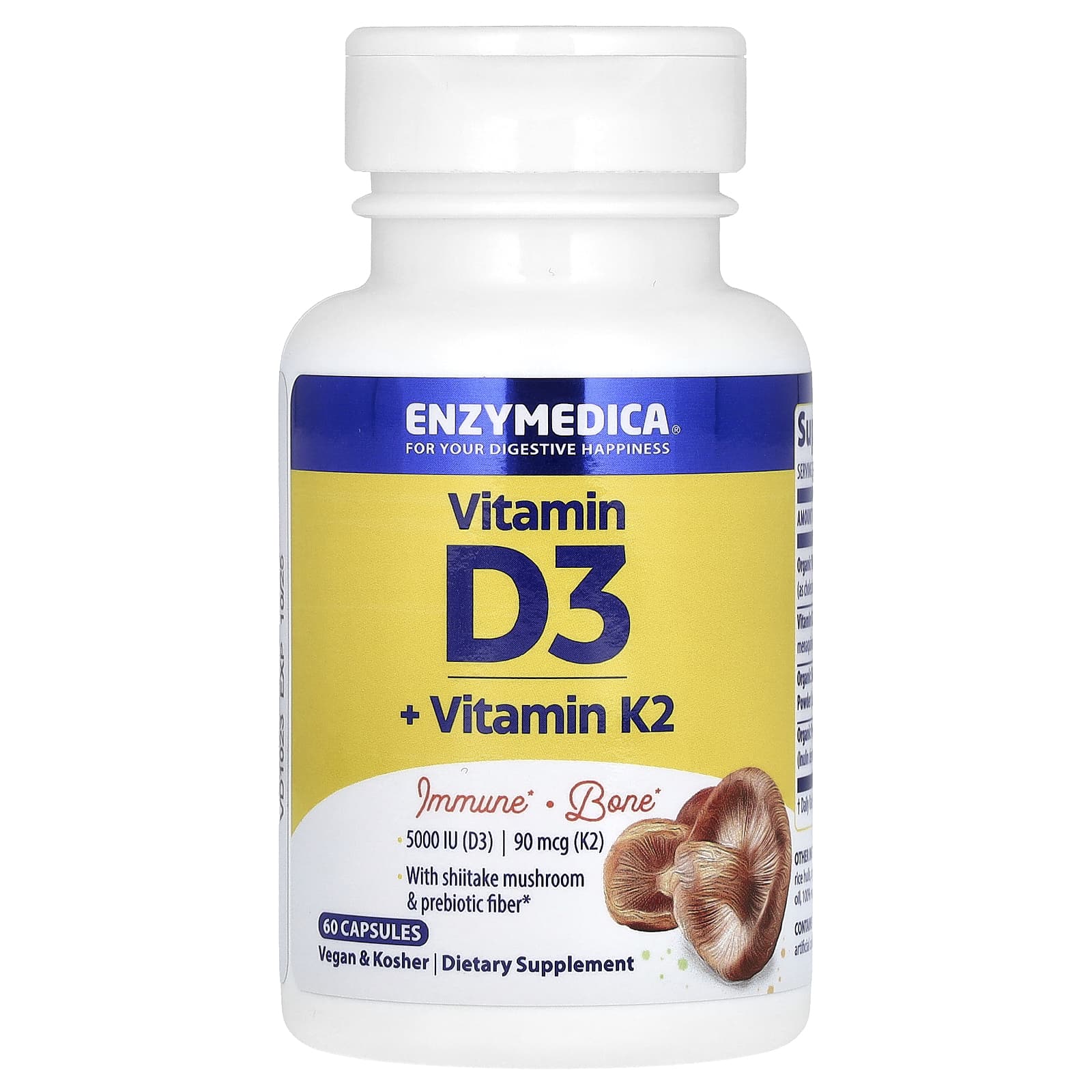 Комплексное сочетание витаминов D3, K2 и грибов шиитаке обеспечивает тройную поддержку иммунитета.