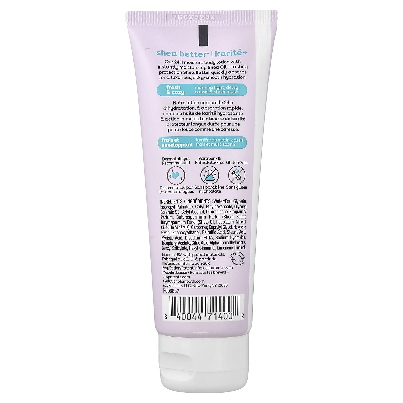 Вода, глицерин, изопропилпальмитат, цетилэтилгексаноат, глицерилстеарат SE, цетиловый спирт, диметикон, отдушка/парфюмерная композиция, Масло Butyrospermum parkii (Ши), масло ши (Butyrospermum parkii), вазелин, минеральное масло, Карбомер, каприлилгликоль, гексиленгликоль, феноксиэтанол, пальмитиновая кислота, стеариновая кислота, миристиновая кислота, Динатрия ЭДТА, гидроксид натрия, токоферилацетат, лимонная кислота, альфа-изометилионон, бензилсалицилат, гексил циннамал, лимонен, линалоол.