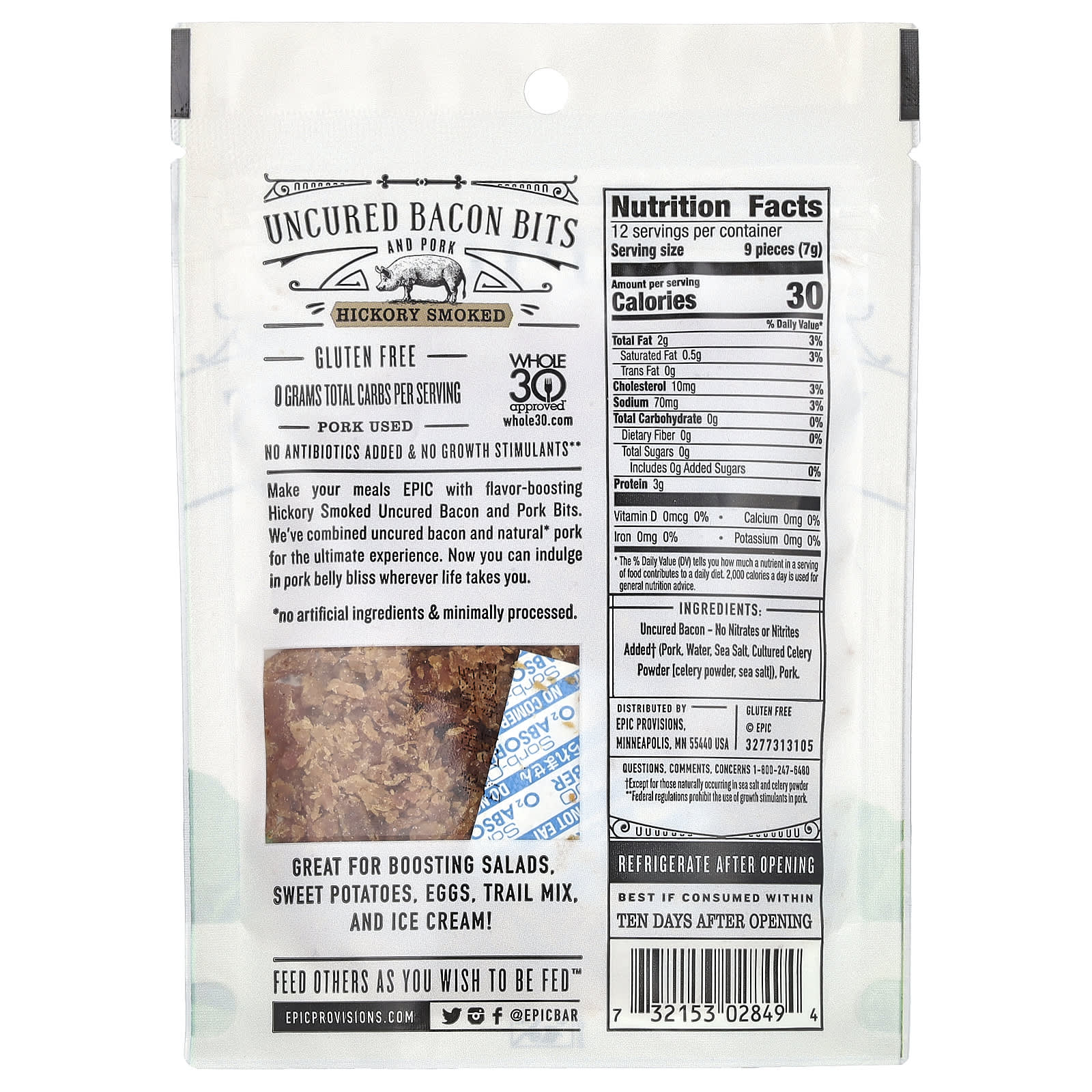 Сделайте свои блюда ЭПИЧНЫМИ с нашим неотделанным беконом, копченым с гикори, и свиными битами, усиливающими вкус. Мы объединили неотложный бекон и натуральную * свинину, чтобы получить незабываемые впечатления. Теперь вы можете наслаждаться блюдами из свиной грудинки, где бы вы ни были.