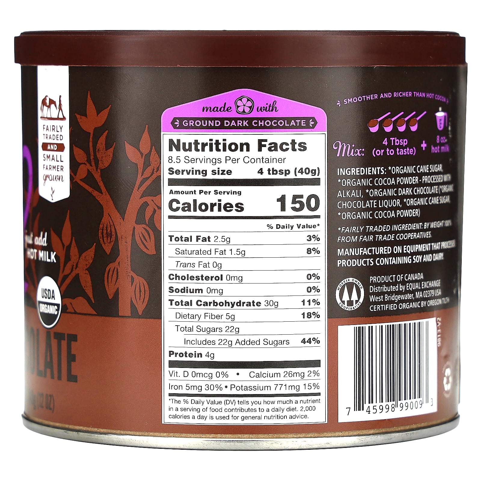 Equal Exchange — это кооператив, основанный в 1986 году. Мы сотрудничаем с небольшими фермерскими кооперативами, чтобы изменить существующие порядки в продовольственной системе и предложить вам вкусные продукты, произведенные с соблюдением принципов справедливой торговли. Покупая это какао, вы поддерживаете мелких фермеров и их сообщества. Спасибо вам.