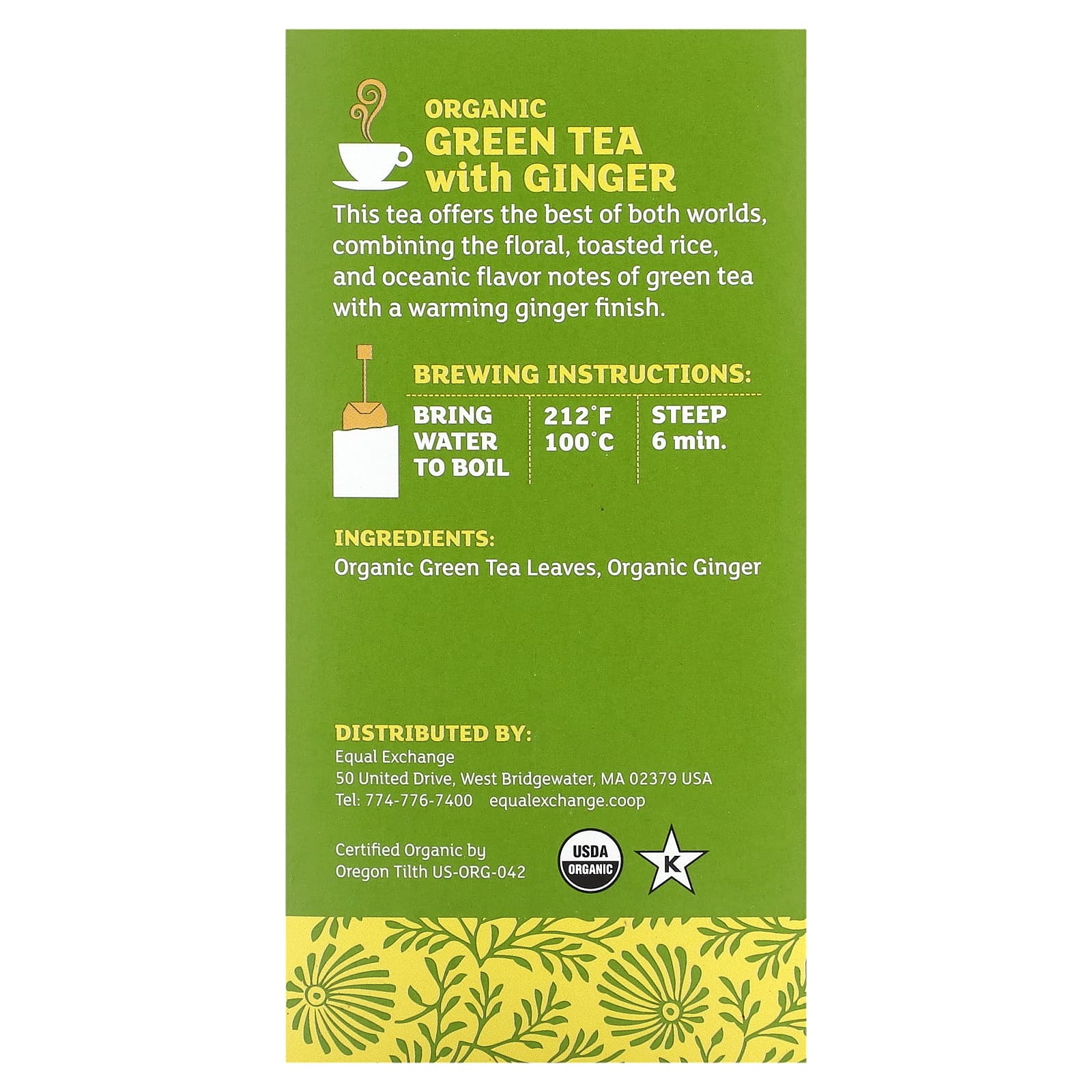 This tea offers the best of both worlds combining the floral, toasted rice, and oceanic flavor notes of green tea with a warming ginger finish.