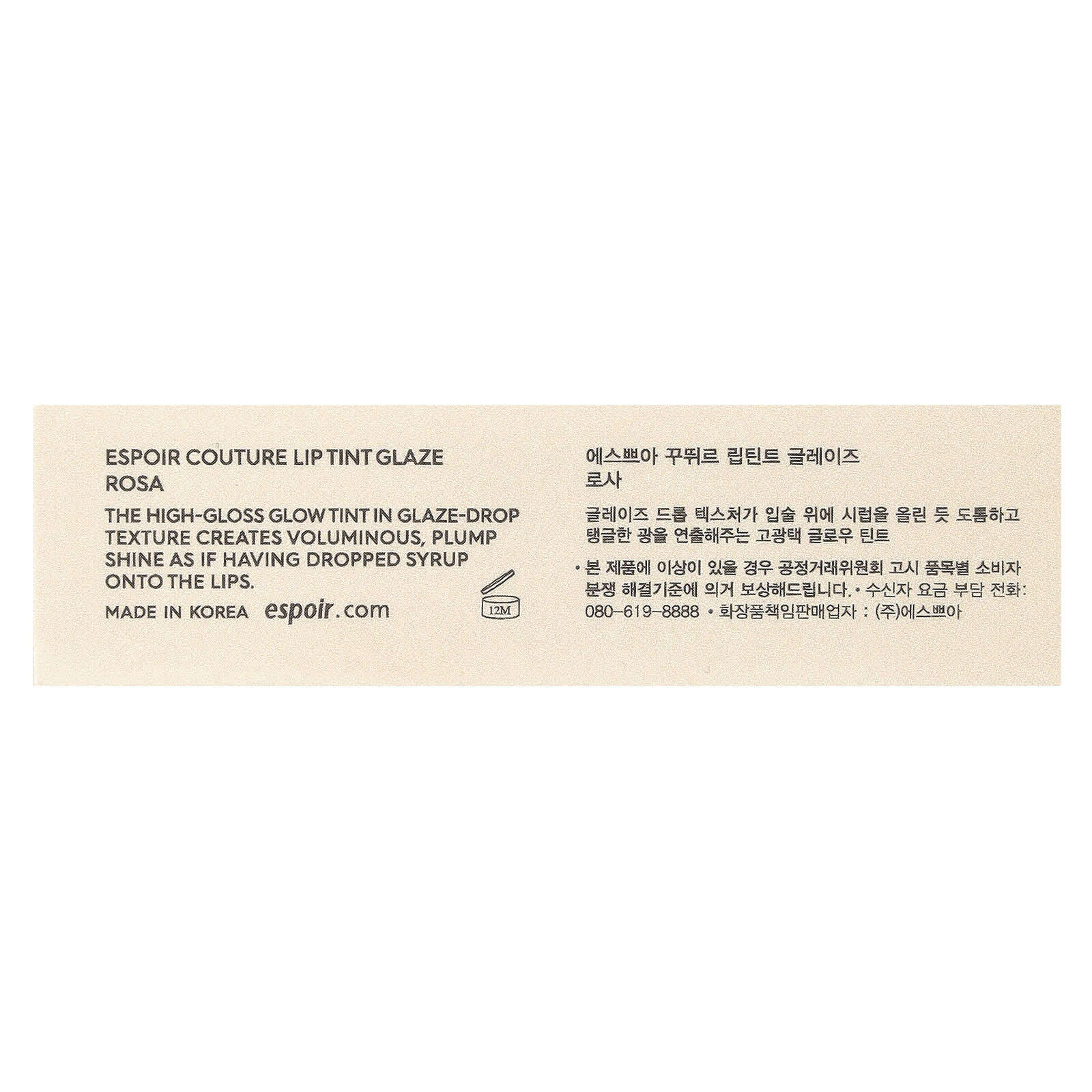 Espoir, Тинт для губ Couture, глазурь, RS101 Rosa, 5,5 г