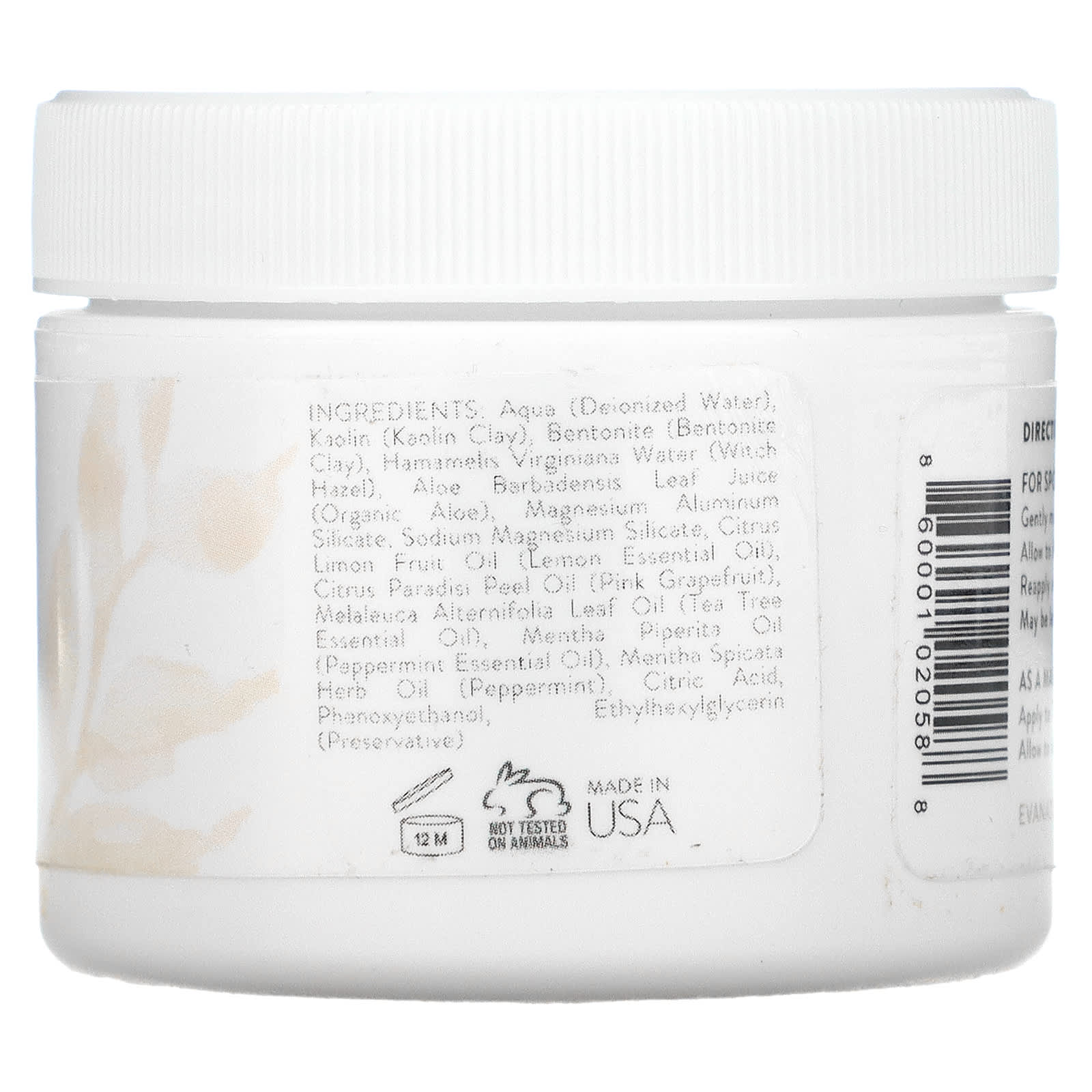 Аква (деионизированная вода), каолин (каолиновая глина), бентонит (бентонитовая глина), вода гамамелиса (Hamamelis virginiana), сок листьев алоэ вера (Aloe barbadensis), силикат магния и алюминия, силикат натрия и магния, масло плодов лимона (Citrus limon), масло из цедры Citrus paradisi (розовый грейпфрут), масло листьев чайного дерева (Melaleuca alternifolia), масло перечной мяты (Mentha piperita), масло травы перечной мяты (Mentha spicata), лимонная кислота, феноксиэтанол, этилгексилглицерин (консервант).