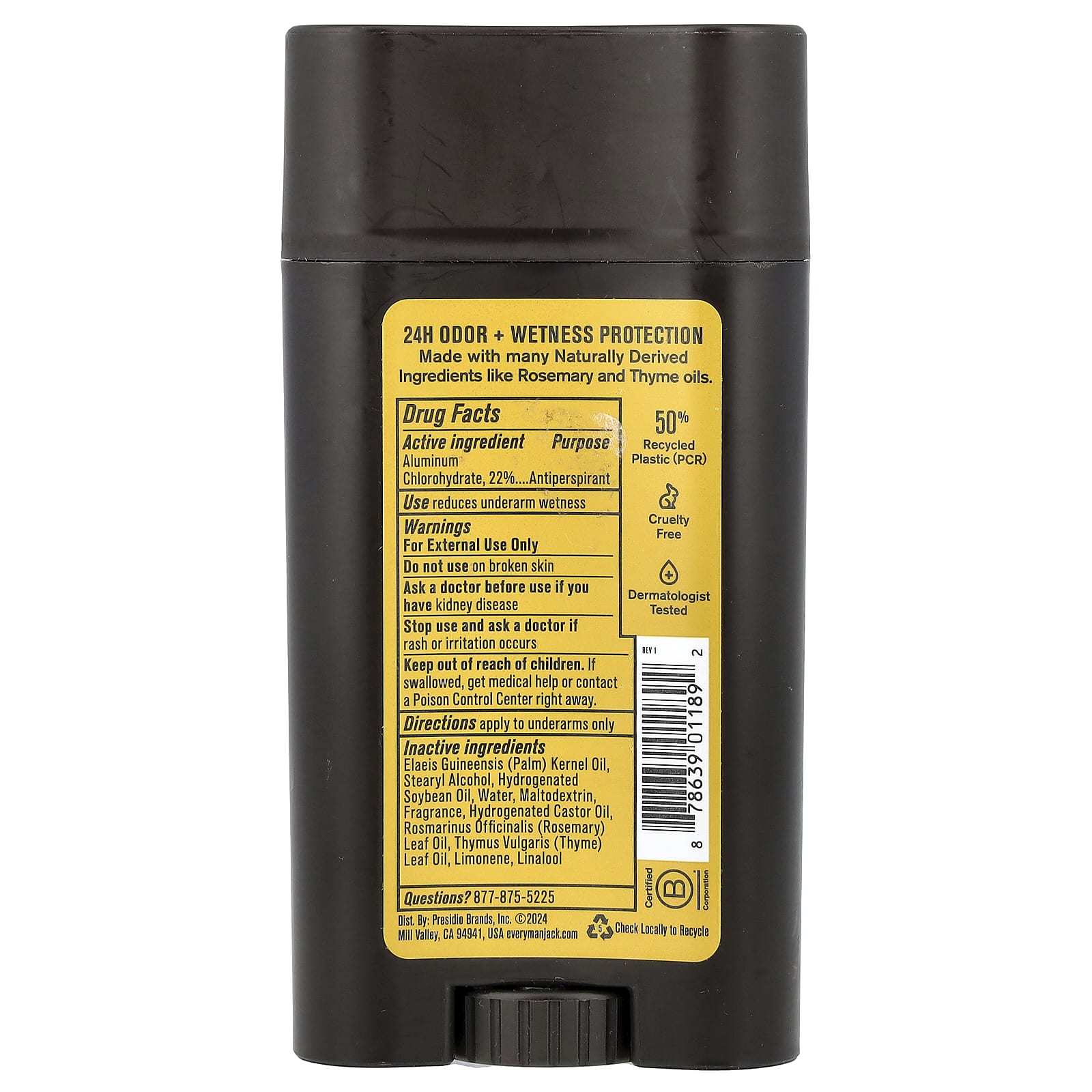 | Вспомогательные ингредиенты: пальмоядровое масло (Elaeis guineensis), стеариловый спирт, гидрогенизированное соевое масло, вода, мальтодекстрин, отдушка, гидрогенизированное касторовое масло, масло листьев розмарина (Rosmarinus officinalis), масло листьев чабреца (Thymus vulgaris), лимонен, линалоол. | |