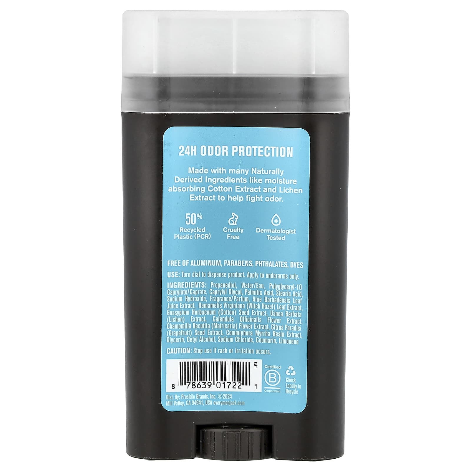 Изготовлено из множества натуральных ингредиентов, таких как поглощающий влагу экстракт хлопка и экстракт лишайника, которые помогают бороться с запахом.
