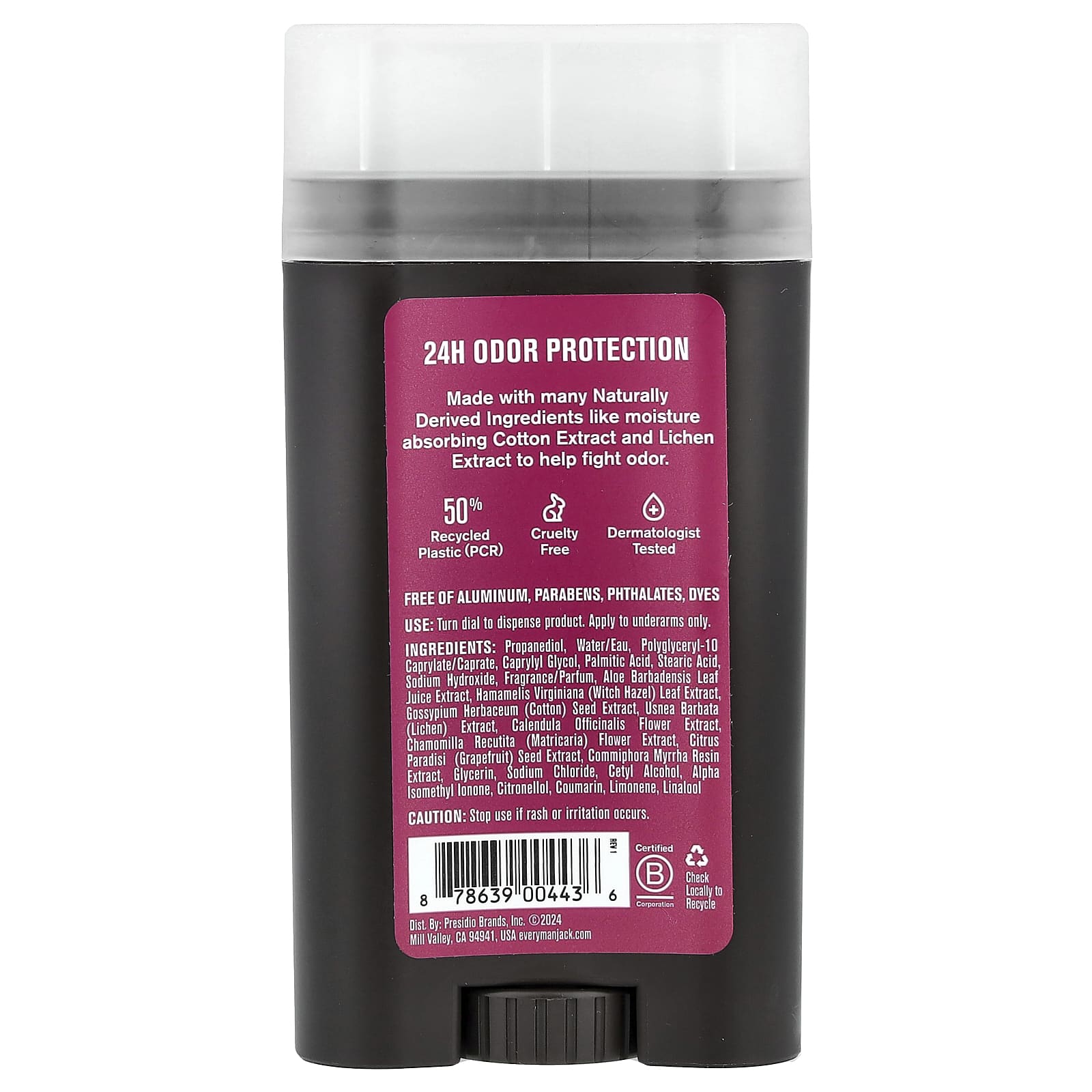 Изготовлено из множества натуральных ингредиентов, таких как поглощающий влагу экстракт хлопка и экстракт лишайника, которые помогают бороться с запахом.