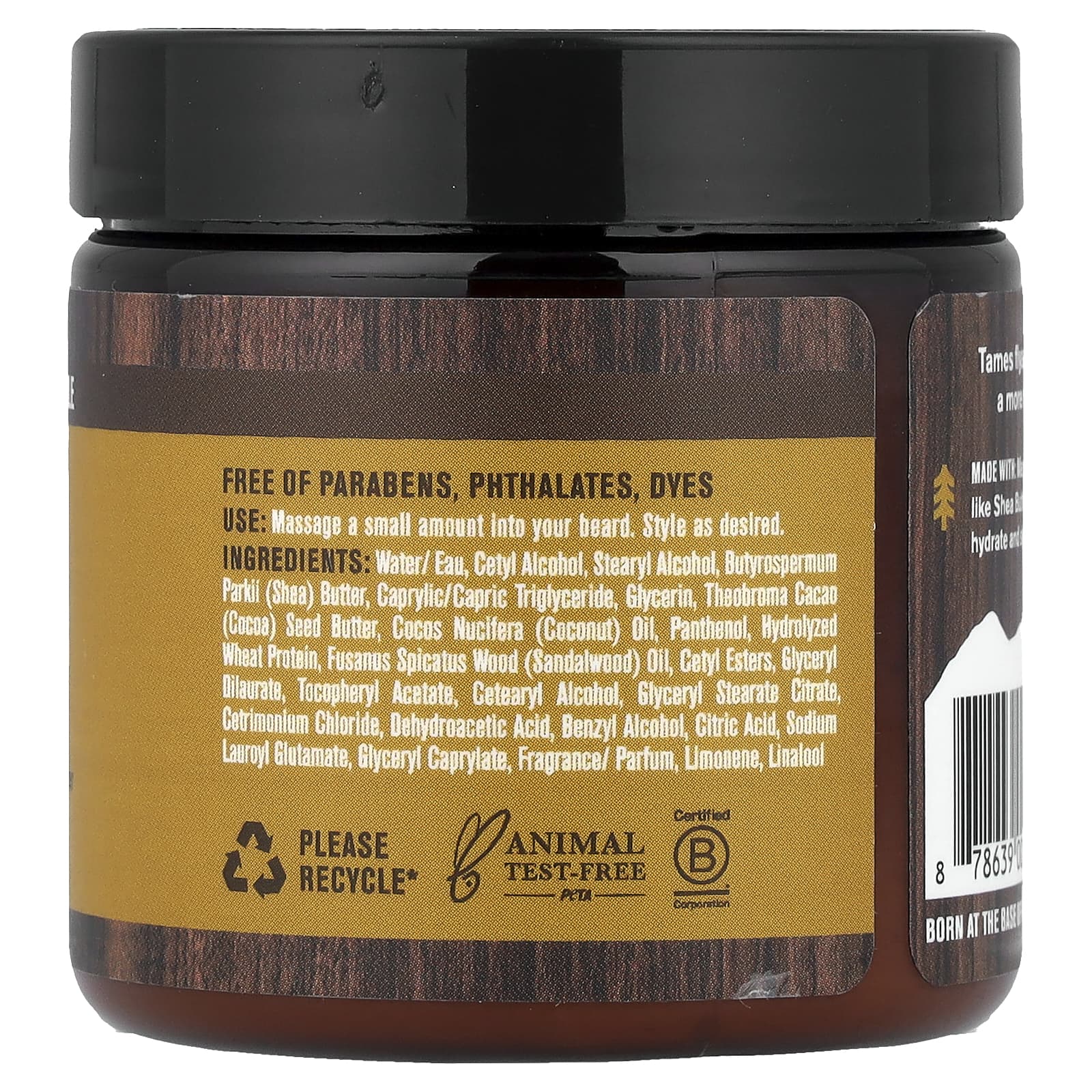 Содержит Многие ингредиенты натурального происхождения, такие как масло ши и масло какао, для увлажнения и укладки волос.