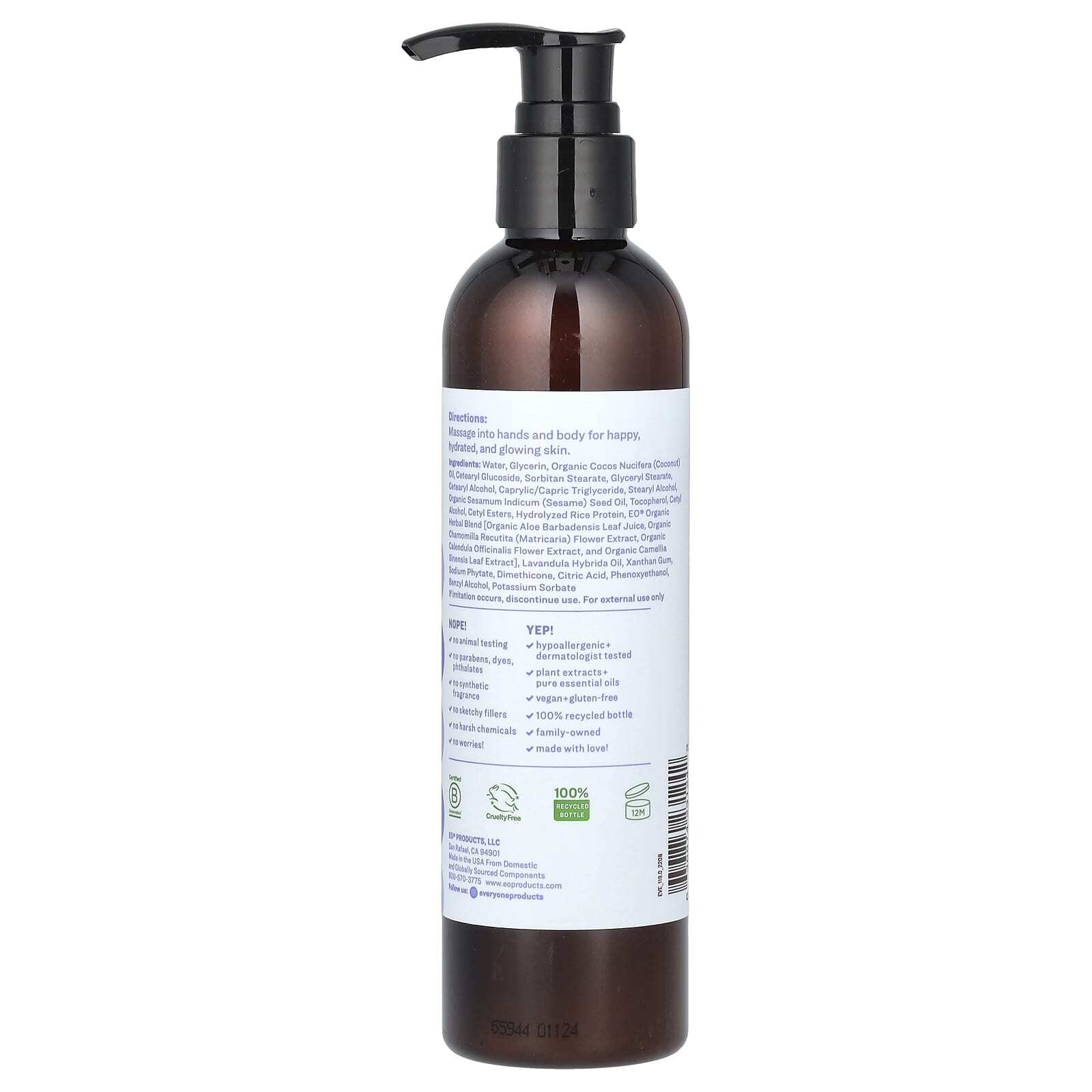 Наш лосьон «Лаванда + алоэ» 2в1 - идеальное средство для разглаживания кожи. Этот легкий, успокаивающий лосьон с лавандой идеально подходит для рук и тела. Охлаждающие свойства алоэ успокоят вашу кожу, невесомо увлажняя ее, а чистое эфирное масло лаванды заставит вас расслабиться.