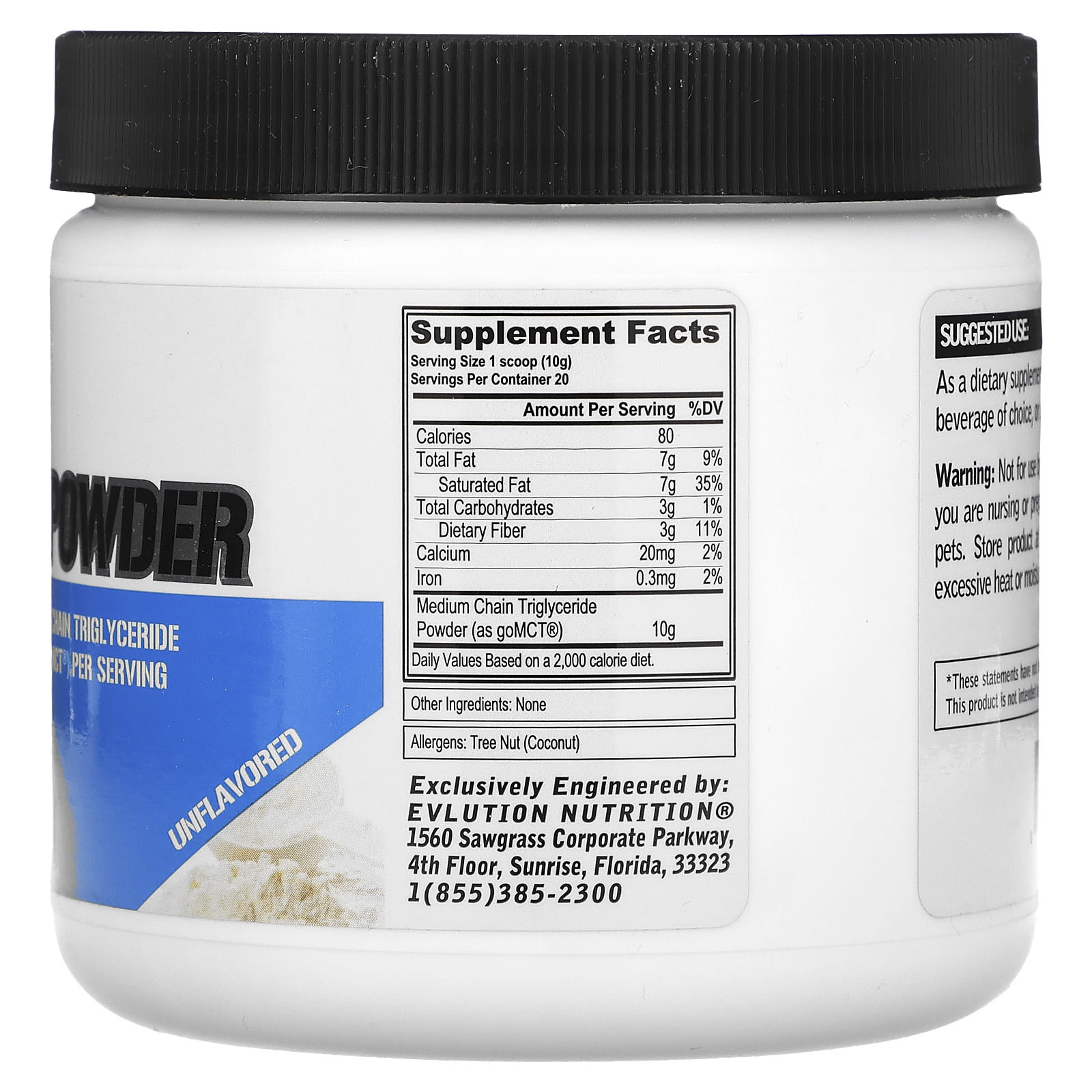Основные сведения о продукте в виде порошка MCT: