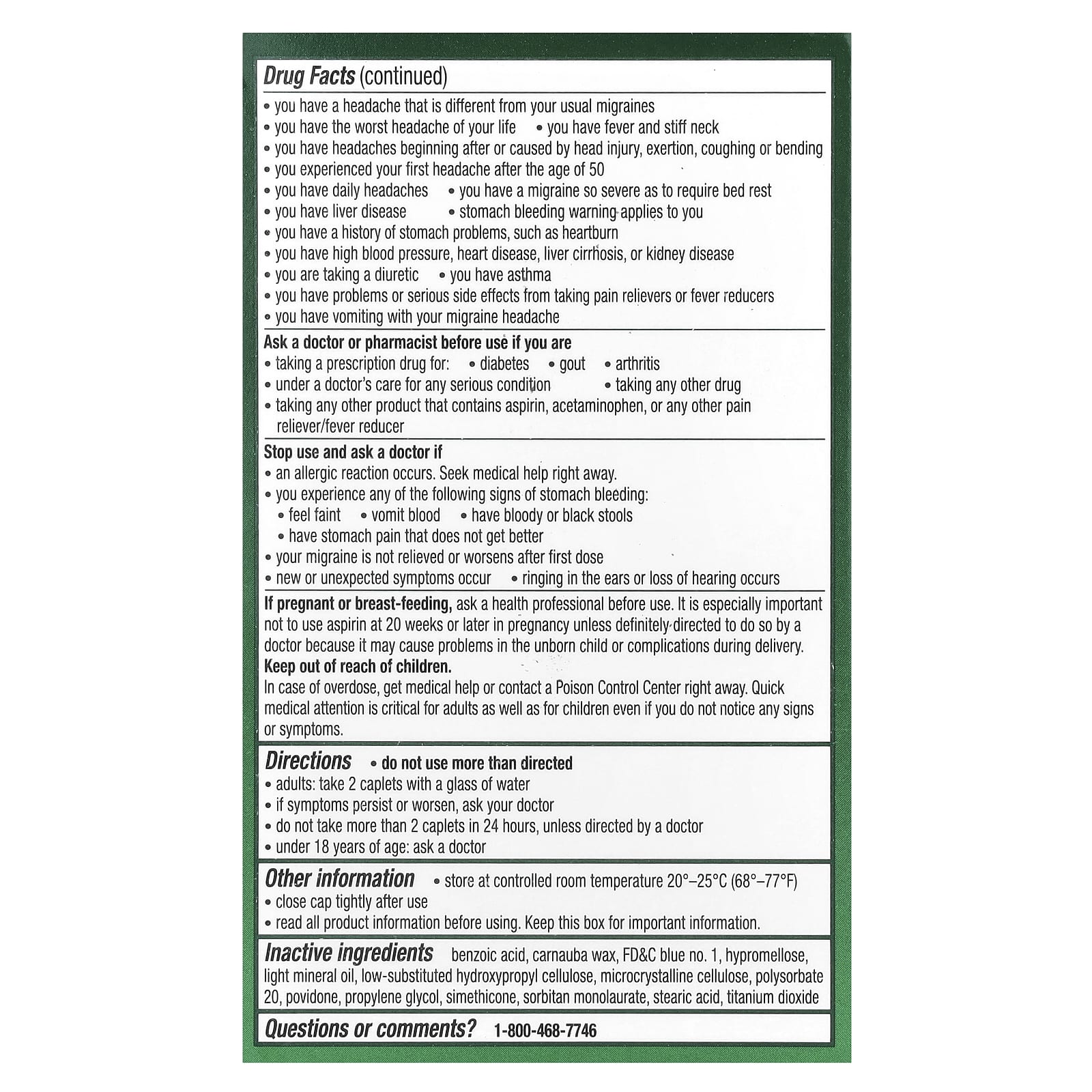 - прием любого другого препарата • прием любого другого продукта, содержащего аспирин, ацетаминофен или любое другое обезболивающее / жаропонижающее средство