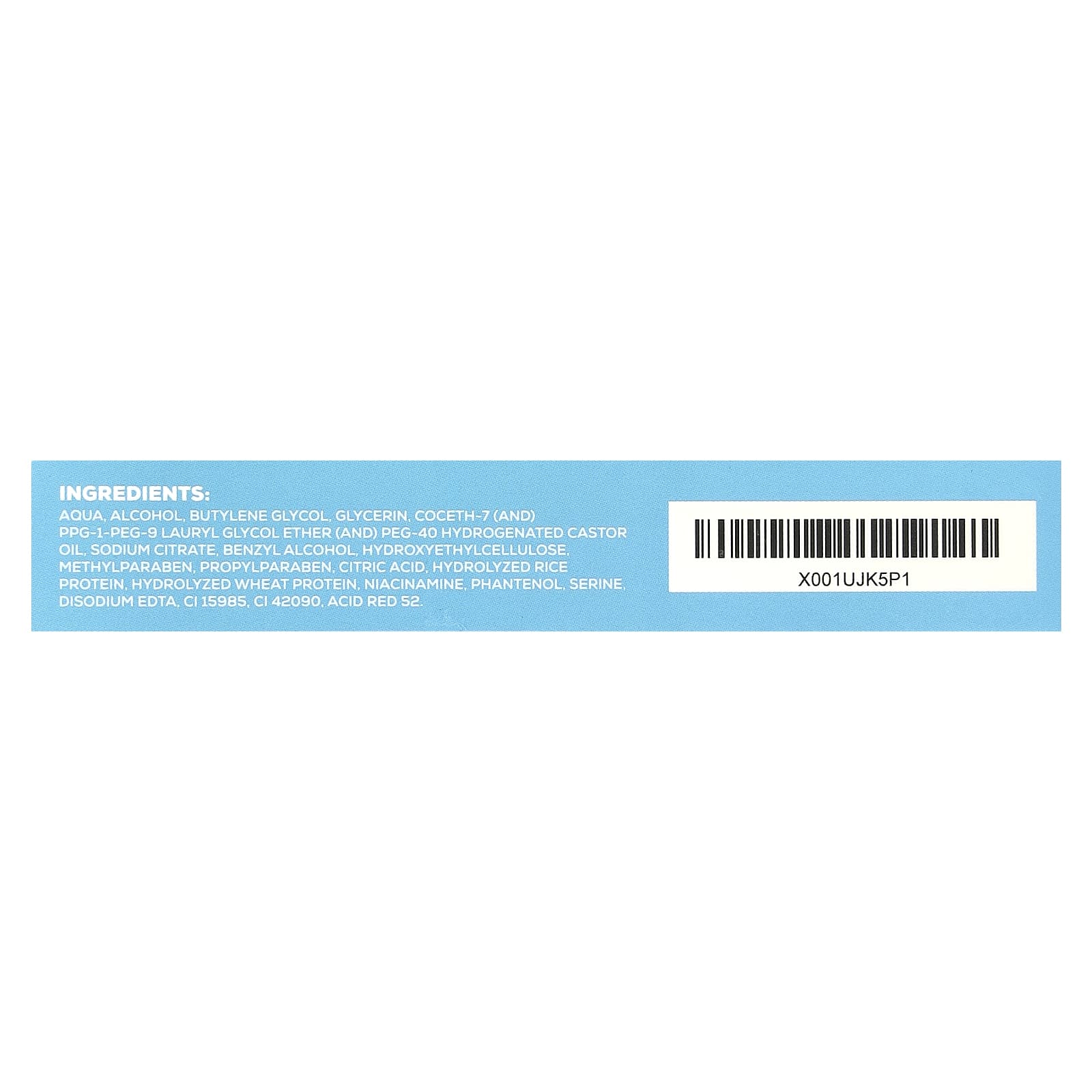 Вода, спирт, бутиленгликоль, глицерин, коцет-7 (и) ППГ-1-ПЭГ-9 лаурилгликоль эфир (и ПЭГ-40) гидрогенизированное касторовое масло, цитрат натрия, бензиловый спирт, гидроксиэтилцеллюлоза, метилпарабен, пропилпарабен, лимонная кислота, гидролизованный рисовый протеин, гидролизованный белок пшеницы, ниацинамин, фантенол, серин, двунатриевая ЭДТК, краситель желтый 6 (CI 15985), CI 42090, краситель красный 52.