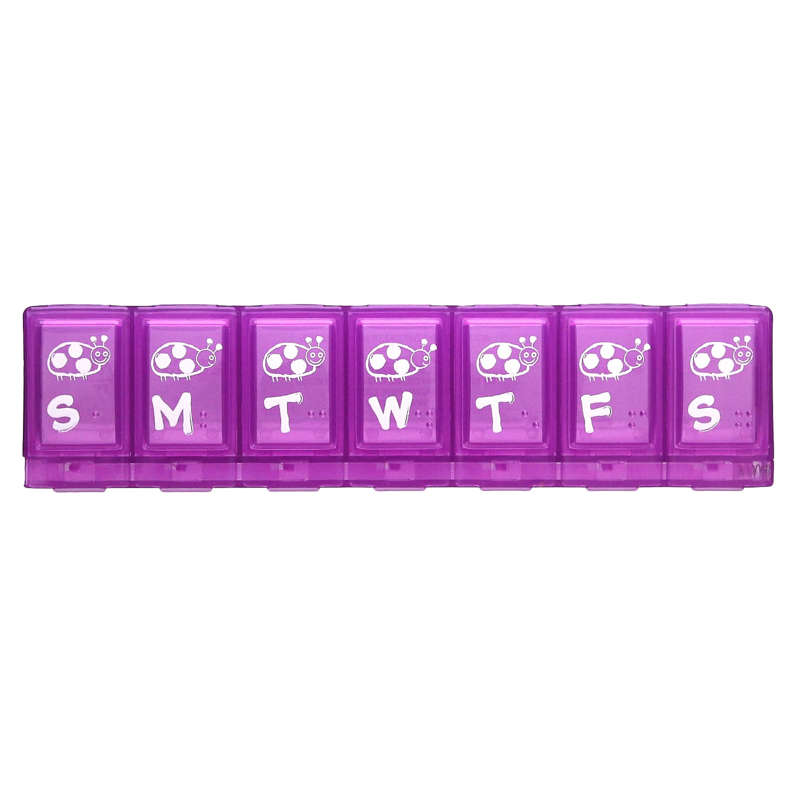Детский органайзер для таблеток Ezy Dose имеет дополнительную планку с замком, которая предотвращает проливание и случайное открытие. Отлично подходит для семей, которым необходимо различать таблетки по планированию для родителей и детей. На каждом отделении указан день недели, а также закругленное дно для удобного извлечения таблеток.