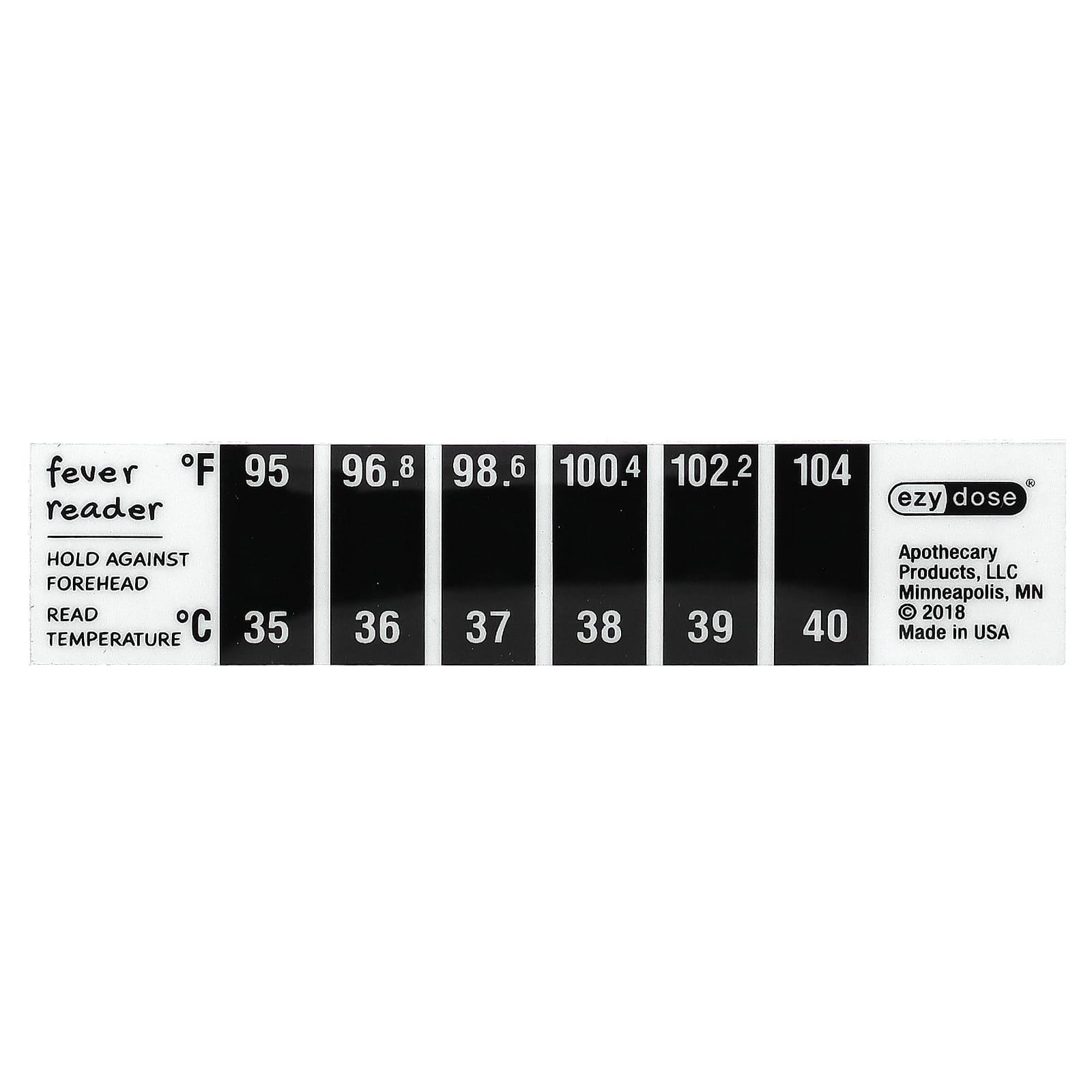 Налобный термометр для детей от Ezy Dose — это быстрый и простой способ обнаружить лихорадку. Просто приложите полоску ребенку на лоб и подержите примерно минуту. Цвет окна с самой высокой температурой указывает на температуру тела. Многоразовый. Просто протрите влажной тканью.