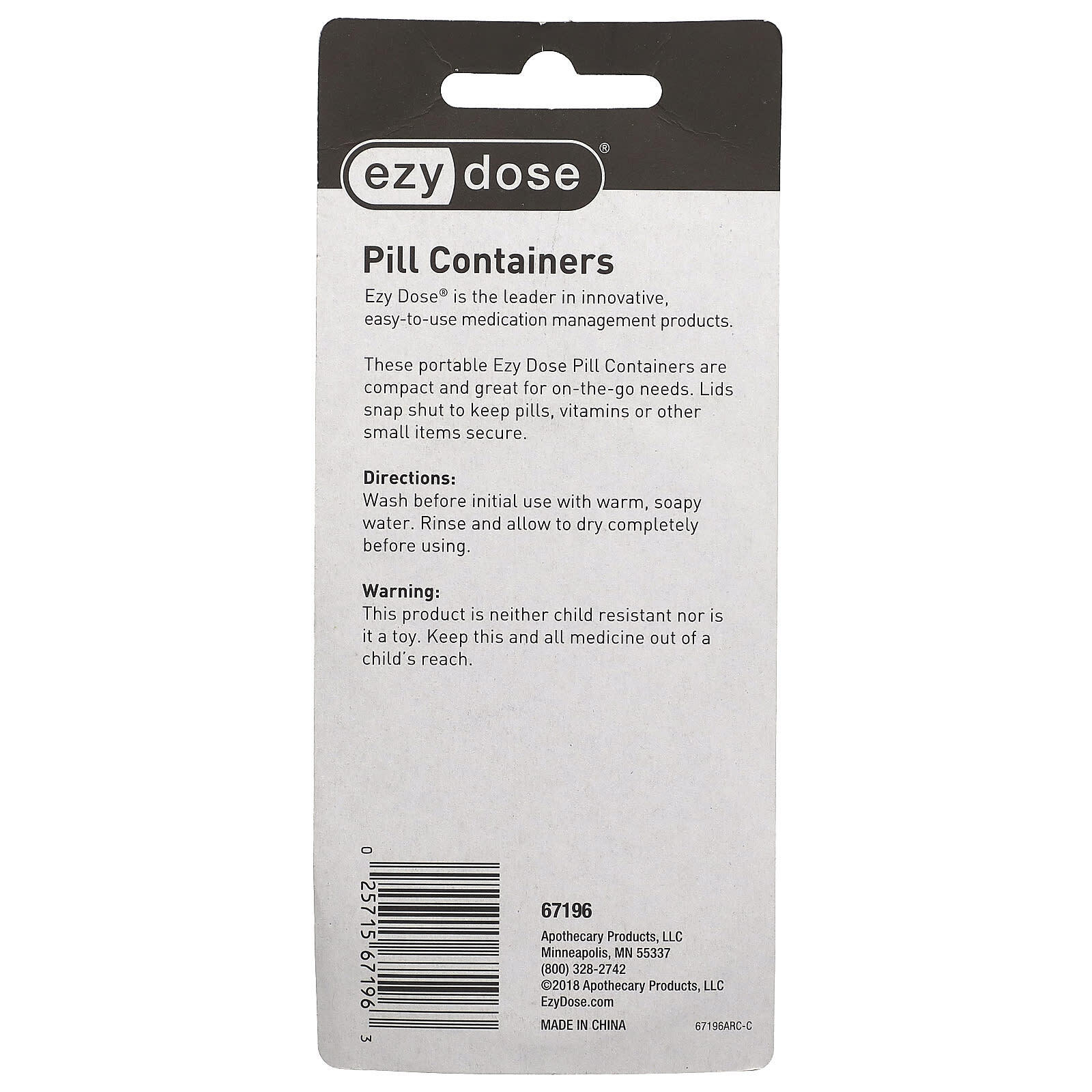 Эти компактные переносные контейнеры для таблеток Ezy Dose отлично подходят для того, чтобы брать их с собой. Крышка захлопывается для безопасности таблеток, витаминов и других небольших предметов.