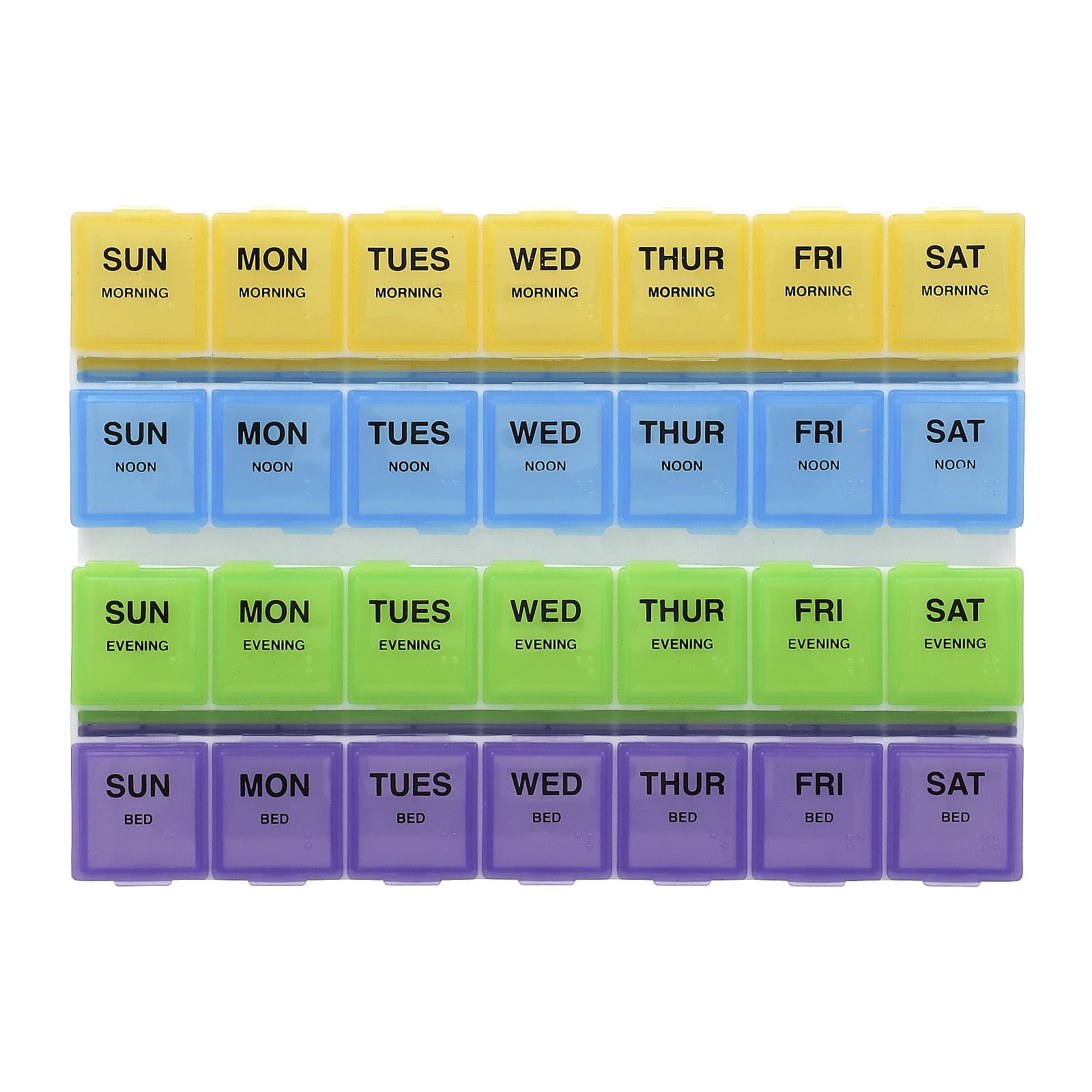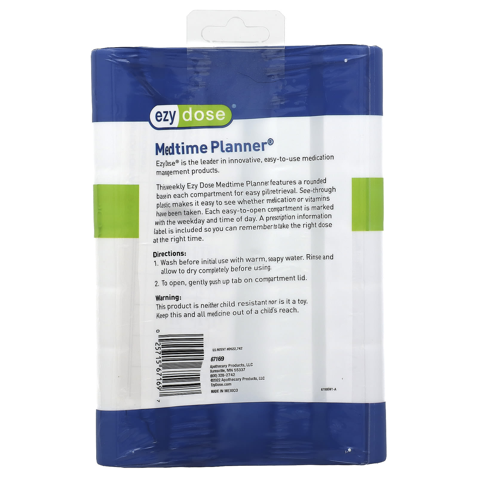 Этот еженедельный медиатор Ezy Dose имеет закругленное дно в каждом отделении для удобного извлечения таблеток. Прозрачный пластик позволяет легко увидеть, были ли приемы лекарств или витаминов. На каждом легкодоступном отделении указаны день недели и время суток. В комплект входит этикетка с рецептом, чтобы вы могли не забудьте принять правильную дозу в нужное время.