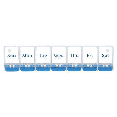 Каждое отделение этого еженедельного органайзера для таблеток Ezy Dose имеет большие кнопки, которые легко открывать. Прорезиненные «ножки» позволяют планнеру захватывать прилавок одной рукой и открывать его. Кнопки отлично подходят для людей с проблемами с подвижностью или чувствительностью рук. Каждое отделение имеет закругленное дно для удобного извлечения таблеток или витаминов.