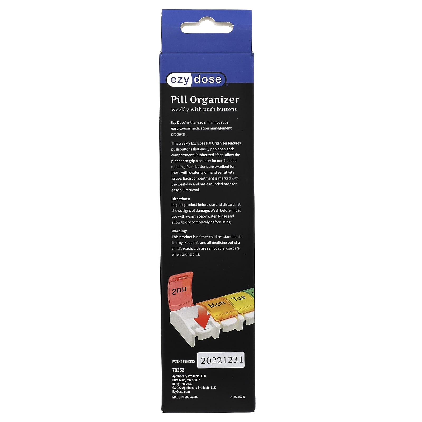 Каждое отделение этого еженедельного органайзера для таблеток Ezy Dose имеет кнопки, которые легко открываются. Прорезиненные «ножки» позволяют планнеру захватывать прилавок одной рукой и открывать его. Кнопки отлично подходят для людей с проблемами с подвижностью или чувствительностью рук. На каждом отделении указан день недели, а также закругленное дно для удобного извлечения таблеток.
