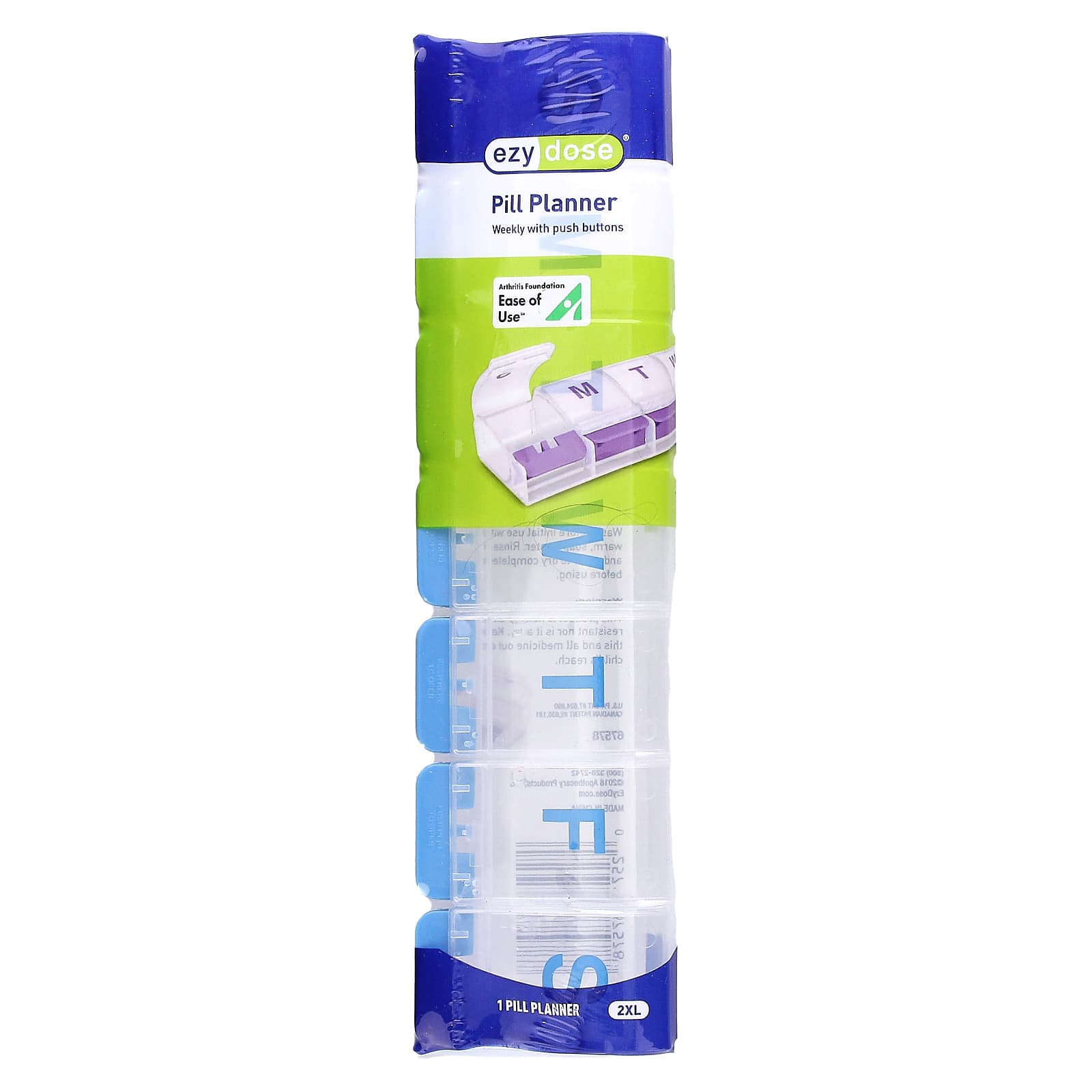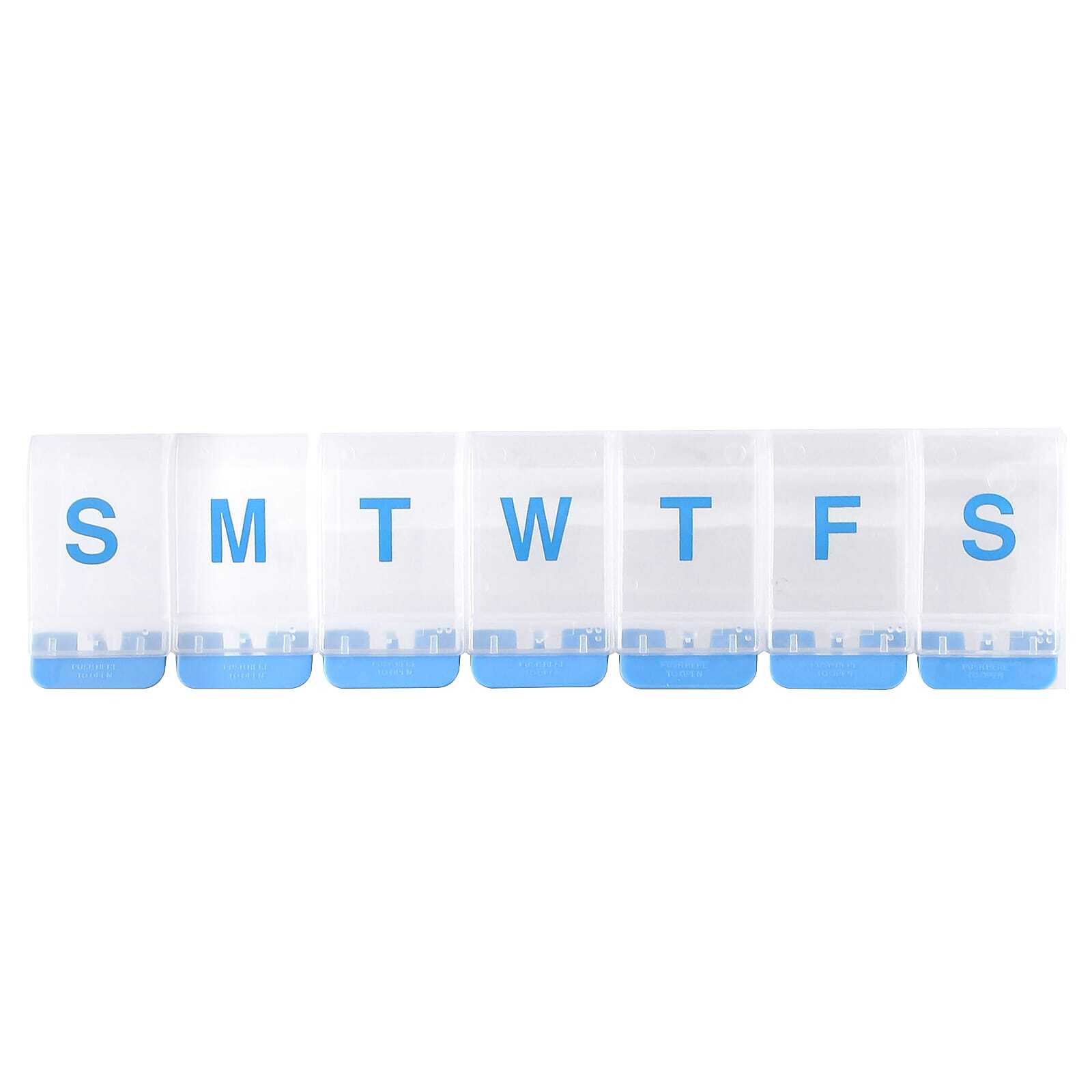 Каждое отделение этого еженедельного органайзера для таблеток Ezy Dose имеет кнопки, которые легко открываются. Прорезиненные «ножки» позволяют планнеру захватывать прилавок одной рукой и открывать его. Кнопки отлично подходят для людей с проблемами с подвижностью или чувствительностью рук. На каждом отделении указан день недели, а также закругленное дно для удобного извлечения таблеток.