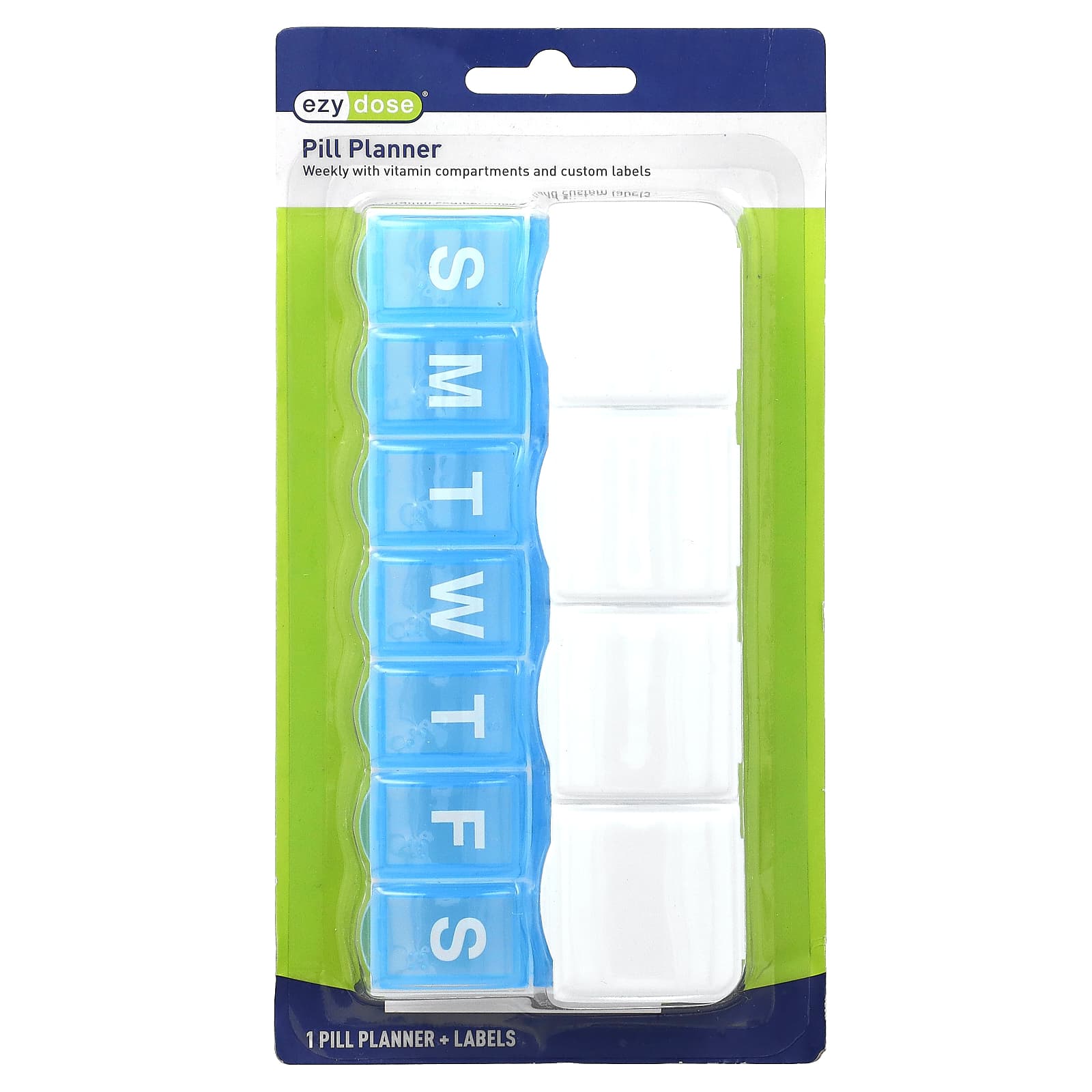 Этот еженедельный органайзер для таблеток Ezy Dose имеет четыре очень больших отделения для витаминов, что позволяет легко хранить и переносить все таблетки и витамины в одном компактном контейнере. В комплект входят предварительно отпечатанные этикетки и пустые этикетки для специальных отделений. На каждом легком для открытия отделении указан день недели и закругленное дно для удобного извлечения таблеток.