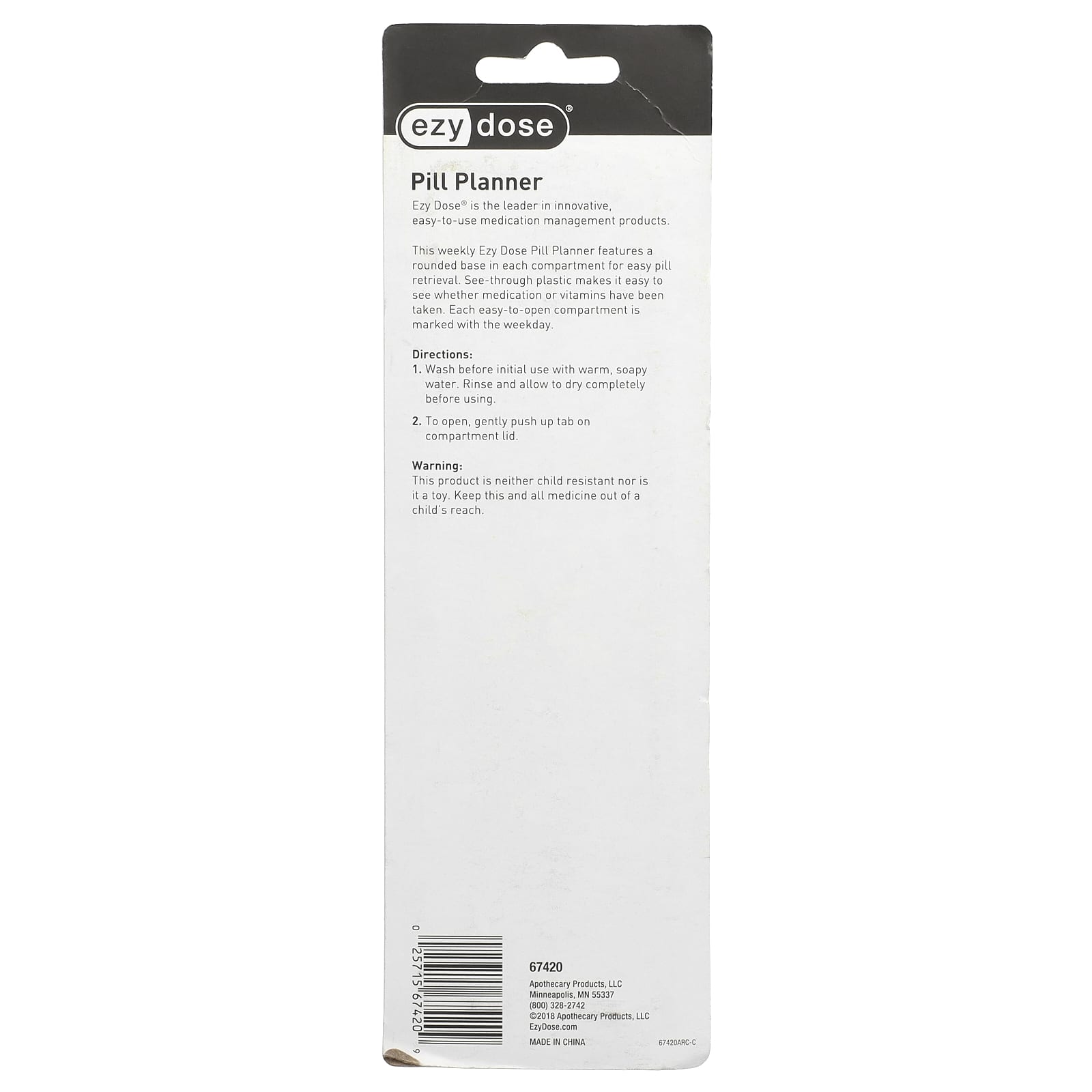Этот еженедельный органайзер для таблеток Ezy Dose имеет закругленное основание в каждом отделении для удобного извлечения таблеток. Прозрачный пластик позволяет легко увидеть, были ли приемы лекарств или витаминов. На каждом легкодоступном отделении указан день недели.