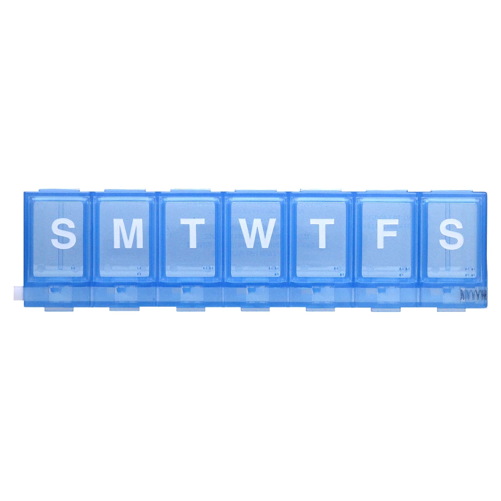 Этот еженедельный органайзер для таблеток Ezy Dose имеет дополнительную планку с замком, которая может предотвратить проливание и случайное открытие. На каждом отделении указан день недели, а также закругленное дно для удобного извлечения таблеток.