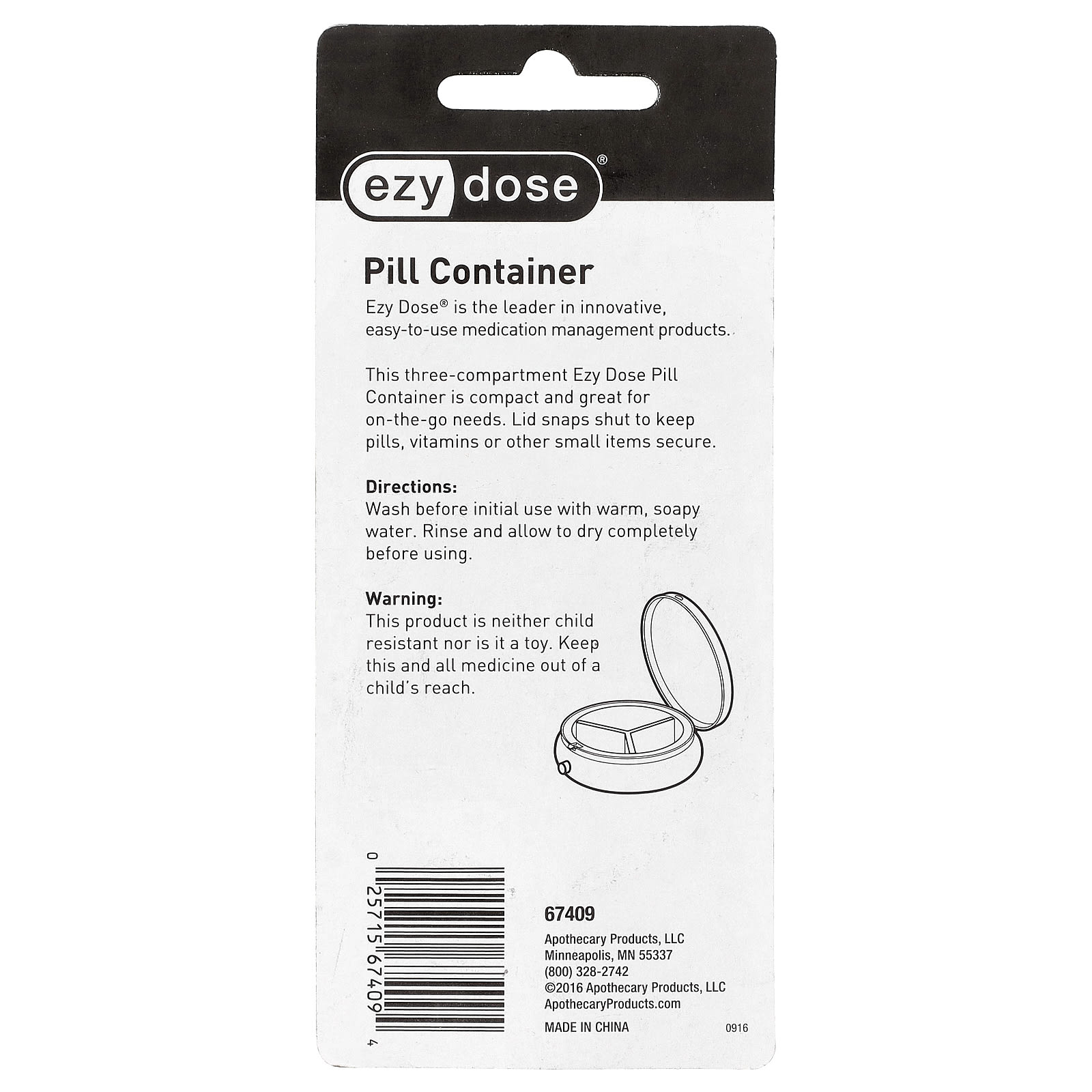 Этот компактный контейнер для таблеток Ezy Dose с тремя отделениями отлично подходит для того, чтобы брать его с собой. Крышка закрывается на защелку для безопасности таблеток, витаминов и других небольших предметов.