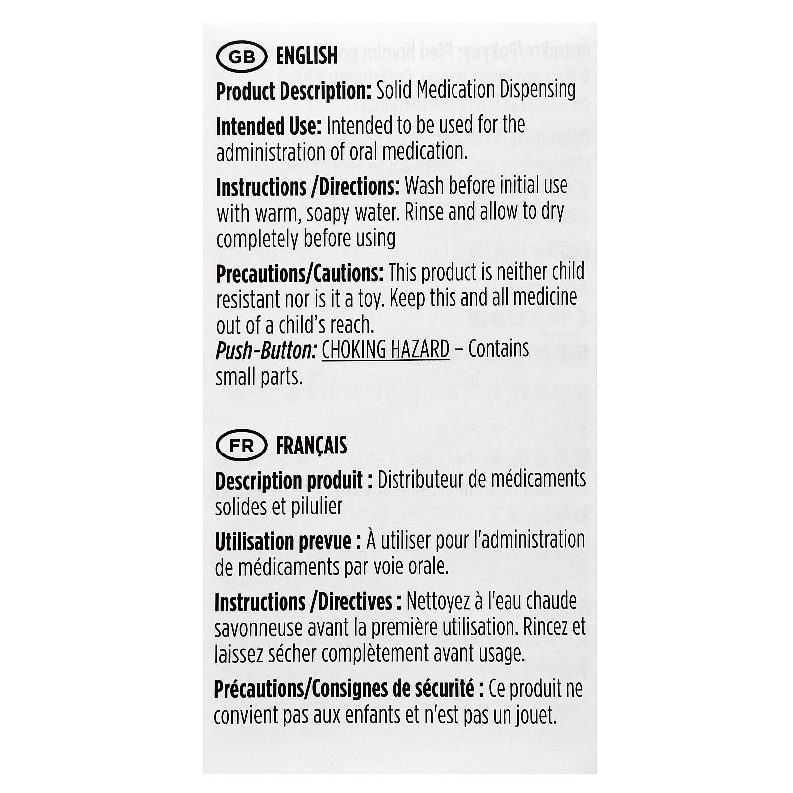 Использование по назначению: Предназначено для приема пероральных препаратов.