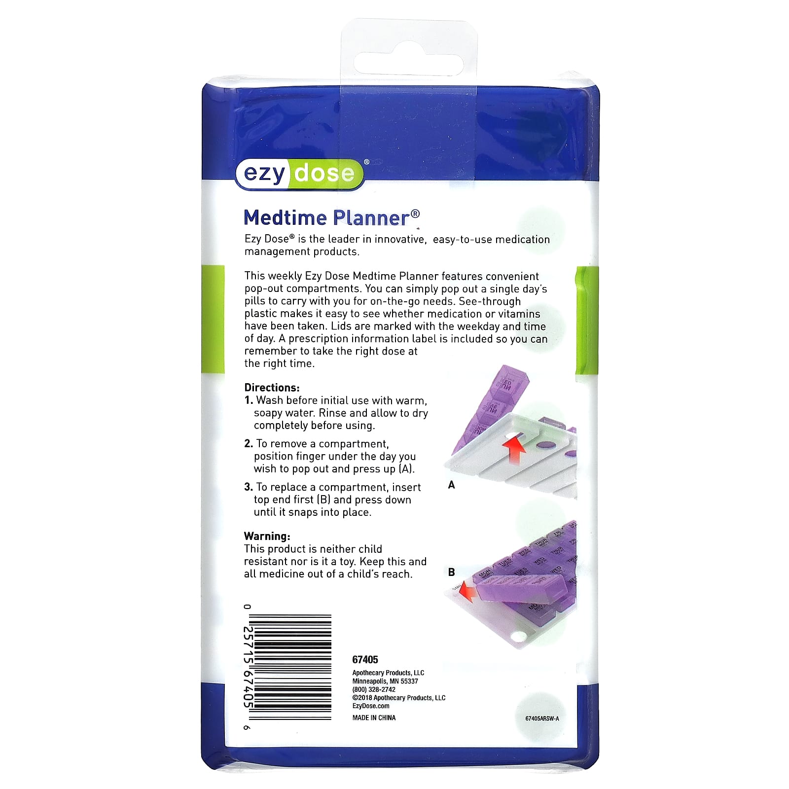 Еженедельный ежедневник Ezy Dose Medtime-Ежедневник с удобными выдвижными отделениями. Вы можете просто взять с собой одноразовую таблетку, чтобы взять ее с собой в любое время. Прозрачный пластик позволяет легко увидеть, были ли приемы лекарств или витаминов. На крышке указаны день недели и время суток. В комплект входит этикетка с рецептом, чтобы вы могли не забудьте принять правильную дозу в нужное время.