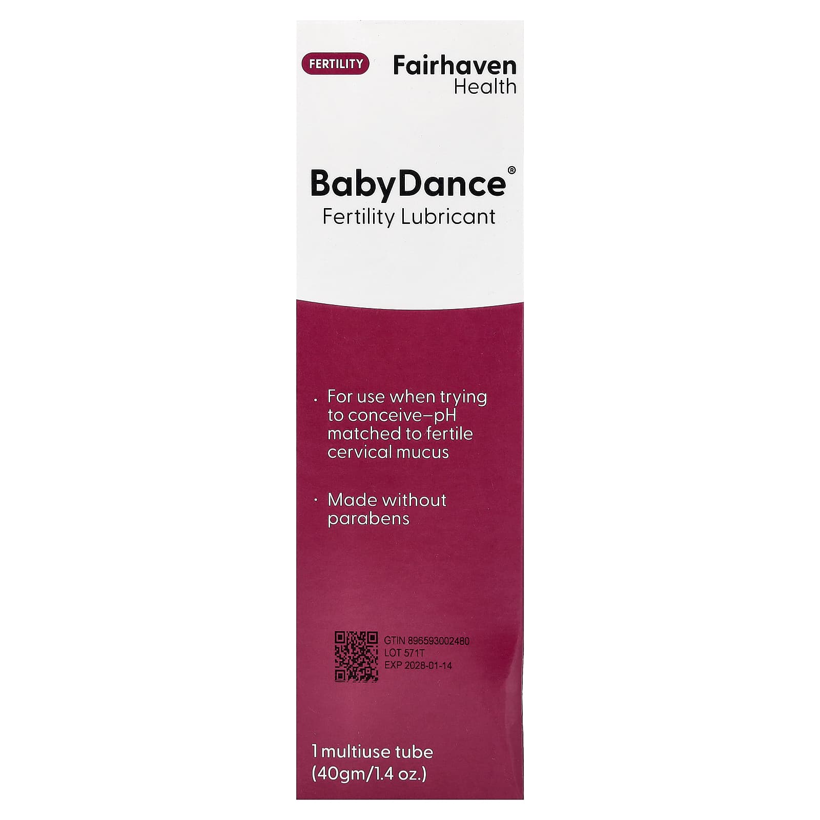 Fairhaven Health, BabyDance®, смазка для повышения фертильности, 1 универсальный тюбик, 40 г (1,4 унции)