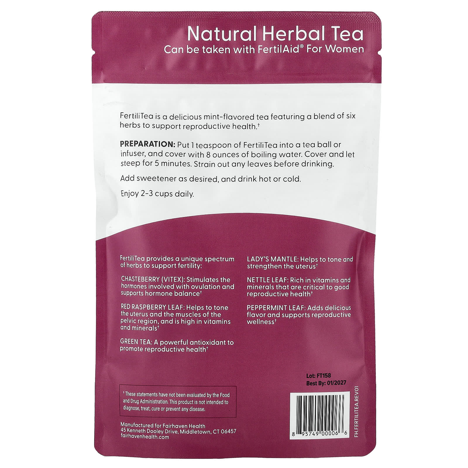 FertiliTea — это восхитительный чай со вкусом мяты, содержащий смесь шести трав для поддержки репродуктивного здоровья.