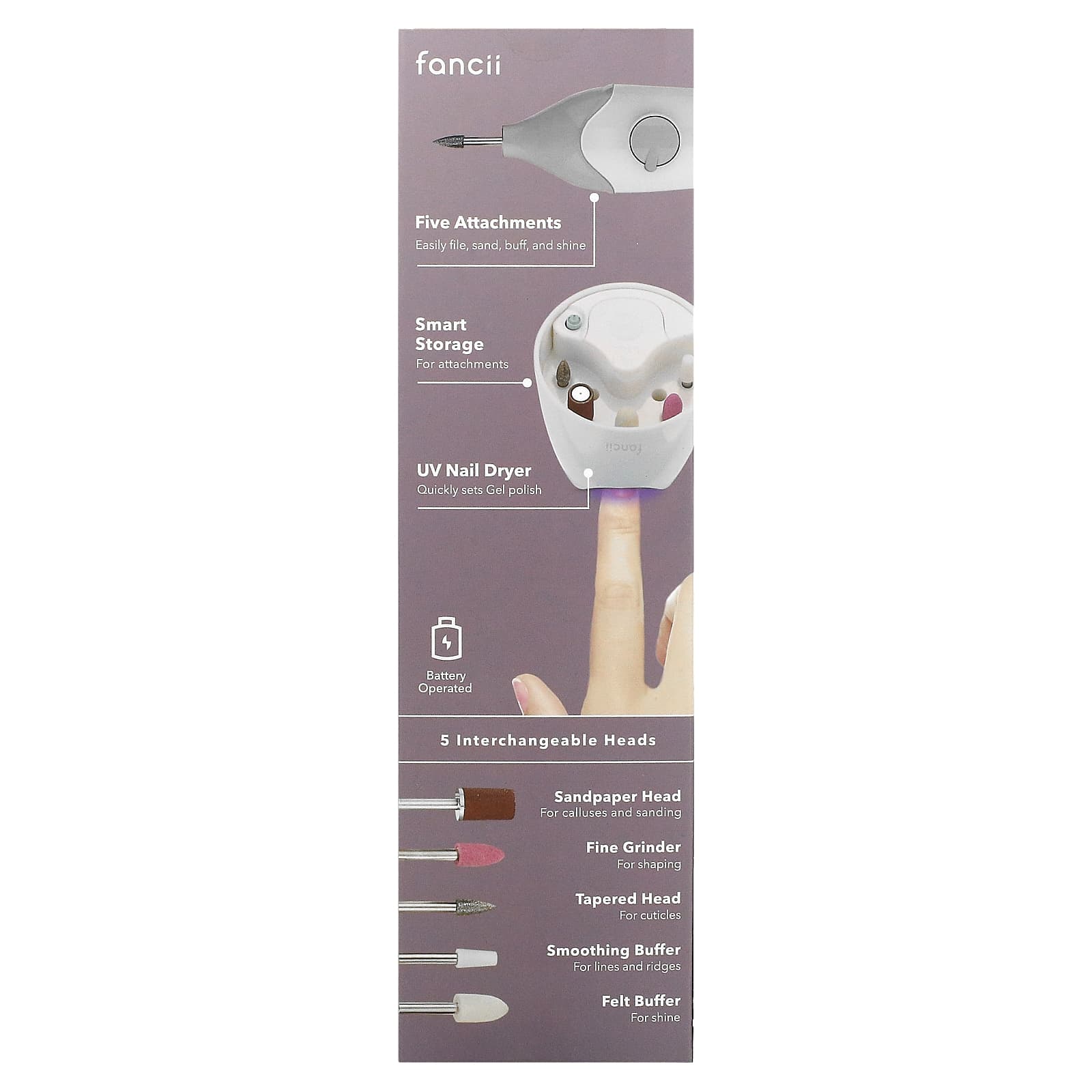 Пришло время отточить свои навыки домашнего маникюра и педикюра! Mynt поставляется с пятью различными насадками, которые помогут вам подпилить, отшлифовать, отполировать и придать ногтям блеск. Независимо от того, нужно ли вам подкрасить ногти между посещениями салона или сохранить естественные ногти ухоженными и здоровыми, Mynt подойдет как для натуральных, так и для акриловых ногтей. Кроме того, на подставке находится ультрафиолетовый луч, который быстро высыхает за считанные секунды, поэтому вам больше не нужно махать руками в воздухе!