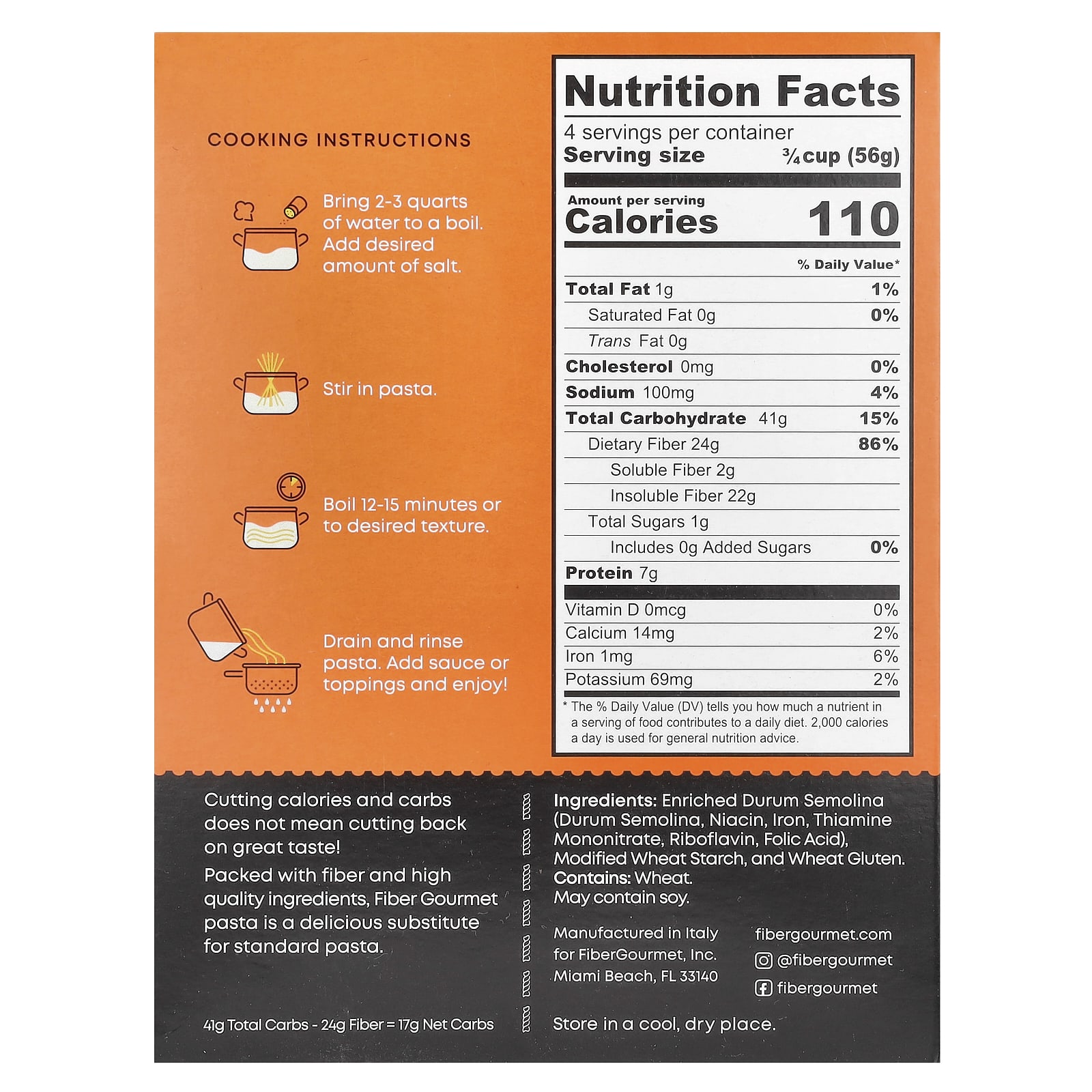 Паста Fiber Gourmet, богатая клетчаткой и высококачественными ингредиентами, является восхитительным заменителем стандартной пасты.