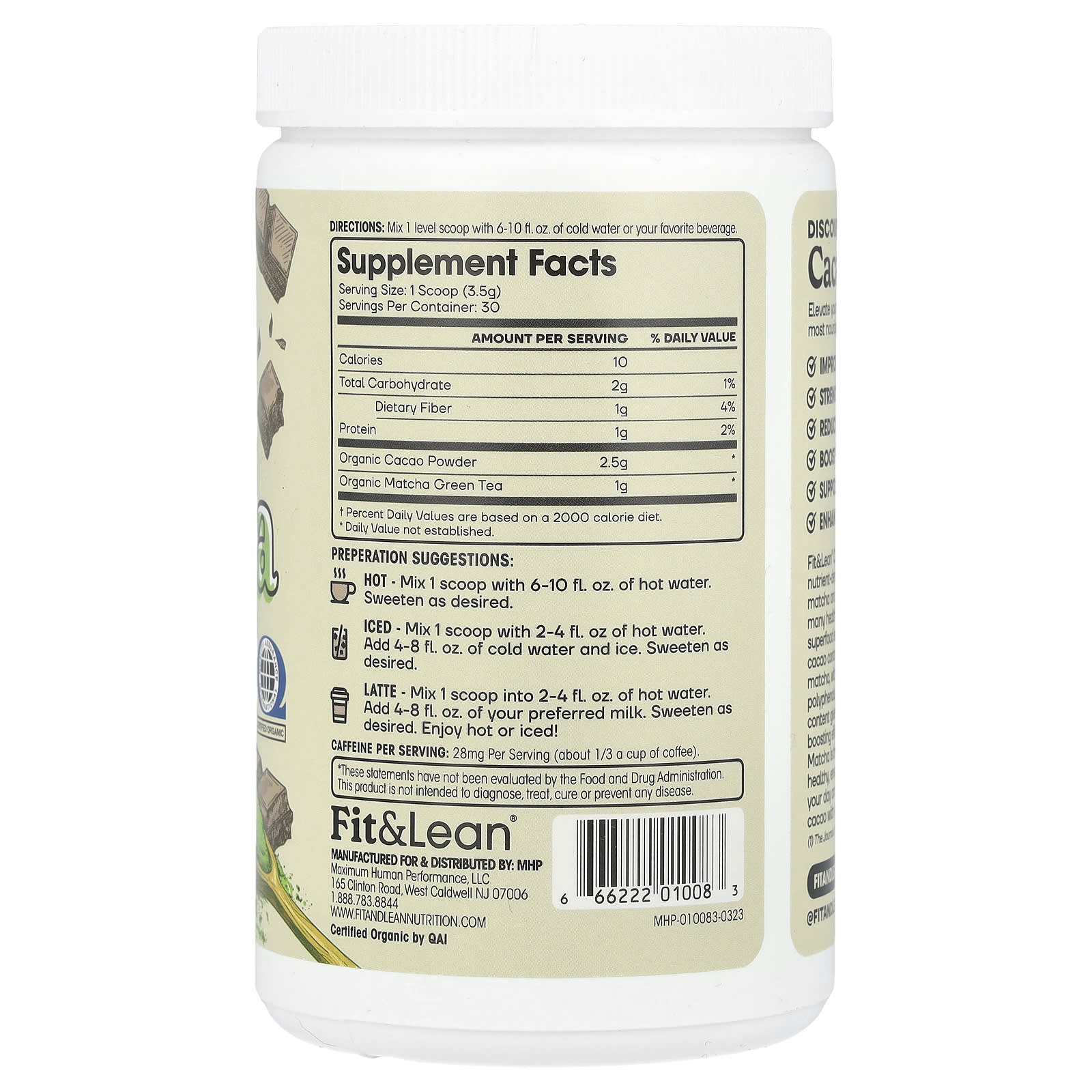 Какао матча Fit&Lean® — это вкусная, богатая питательными веществами смесь органического церемониального качества матча и необработанного органического какао. Да, матча имеет много преимуществ для здоровья, но самый настоящий суперфуд — это какао. Необработанное какао богато питательными веществами и содержит даже больше антиоксидантов, чем матча, а также в 12 раз больше флавоноидов и в 3 раза больше полифенолов.(1) Чрезвычайно высокое содержание флавоноидов в какао обеспечивает мощное когнитивное действие и улучшение настроения. Наше богатое антиоксидантами какао матча — идеальный динамичный дуэт для поддержки здоровья, энергии и остроты ума. Украсьте свой день и насладитесь насыщенным ароматным вкусом какао с чаем матча.