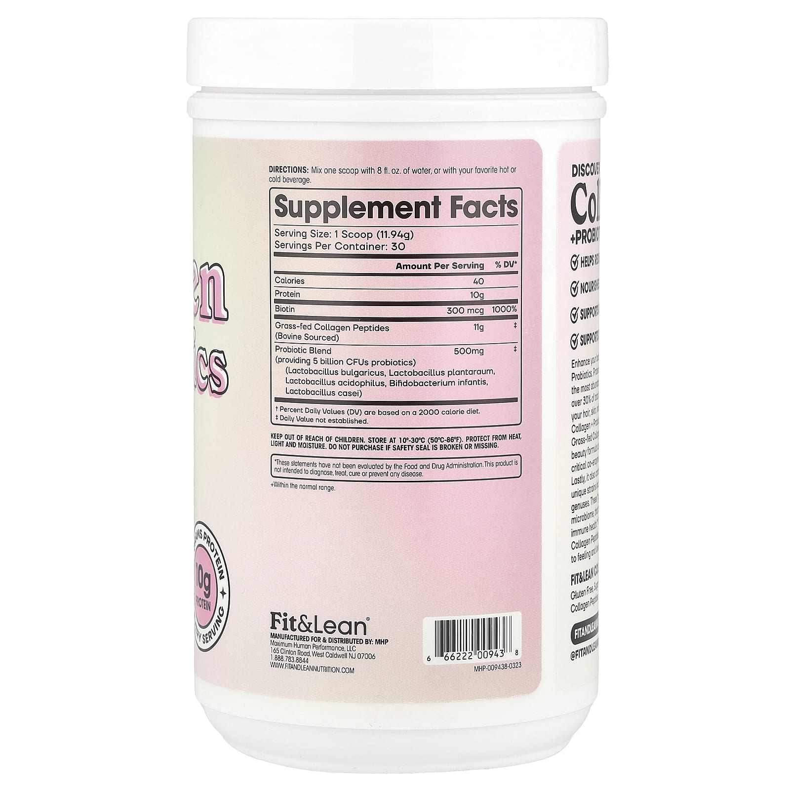Улучшите свое тело с помощью коллагена с пробиотиками Fit & Lean®. Белок - это основа здорового организма, а самый распространенный белок в организме - коллаген, составляющий более 30% всех белков организма. Коллаген содержится в волосах, коже, ногтях, мышцах, костях и суставах. Коллаген с пробиотиками Fit & Lean содержит 11 граммов пептидов коллагена, полученного от травяного откорма высочайшего качества. Кроме того, эта усовершенствованная формула для ухода за телом и косметикой также содержит 1000% суточной нормы биотина, важного кофермента, поддерживающего и питающего волосы, кожу и ногти. Наконец, он также содержит 5 миллиардов КОЕ пробиотиков из 5 уникальных штаммов, включая роды лактобактерий и бифидобактерий. Эти «полезные бактерии» могут помочь вам создать здоровый микробиом, который может способствовать лучшему пищеварению, регулярности и укреплению иммунитета. С этим мощным сочетанием пептидов коллагена, биотина и пробиотиков от травяного откорма вы станете чувствовать себя красивыми и подтянутыми!