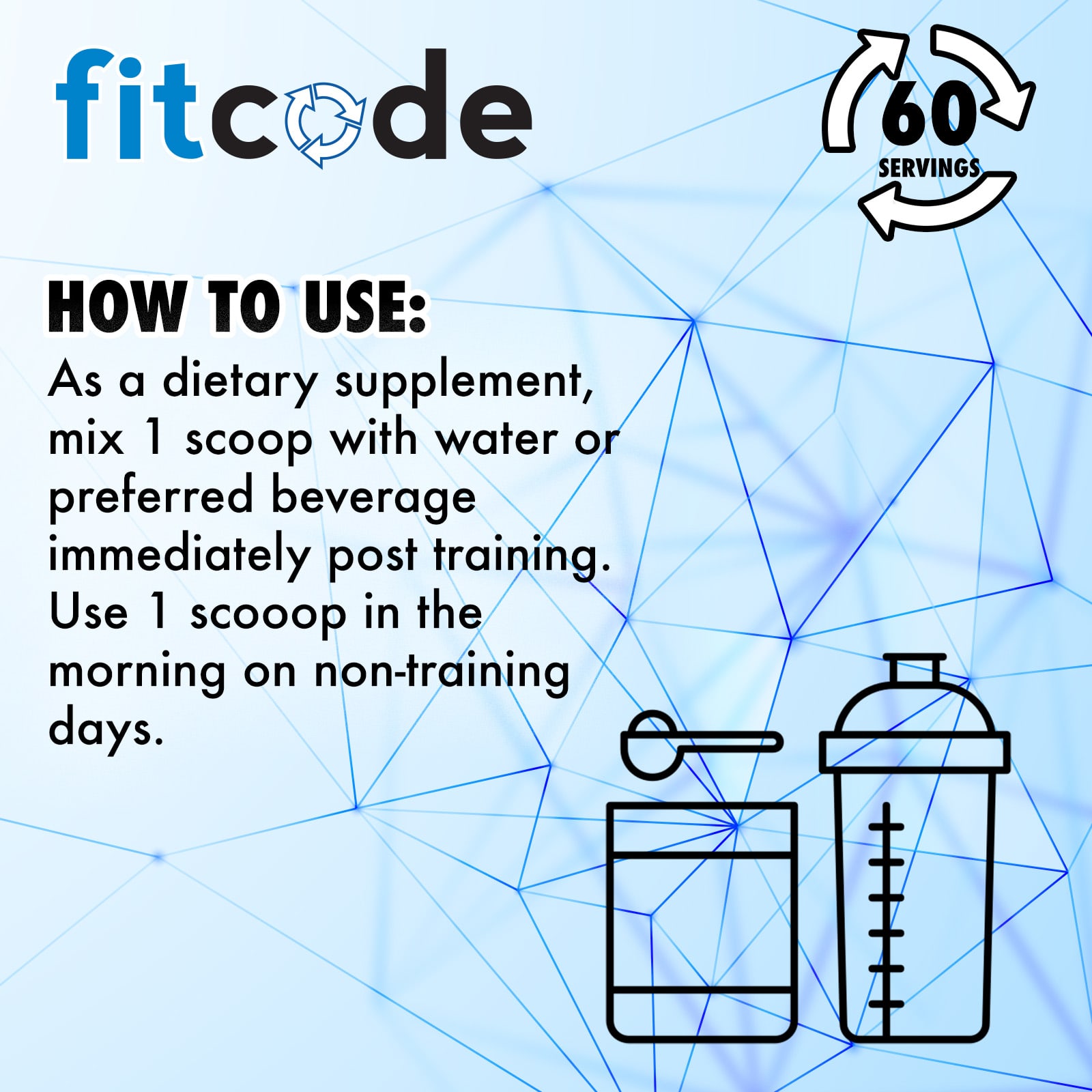 В качестве пищевой добавки смешайте 1 мерную ложку порошка с водой или любимым напитком сразу после тренировки. Принимайте по 1 мерной ложке утром в дни без тренировок.