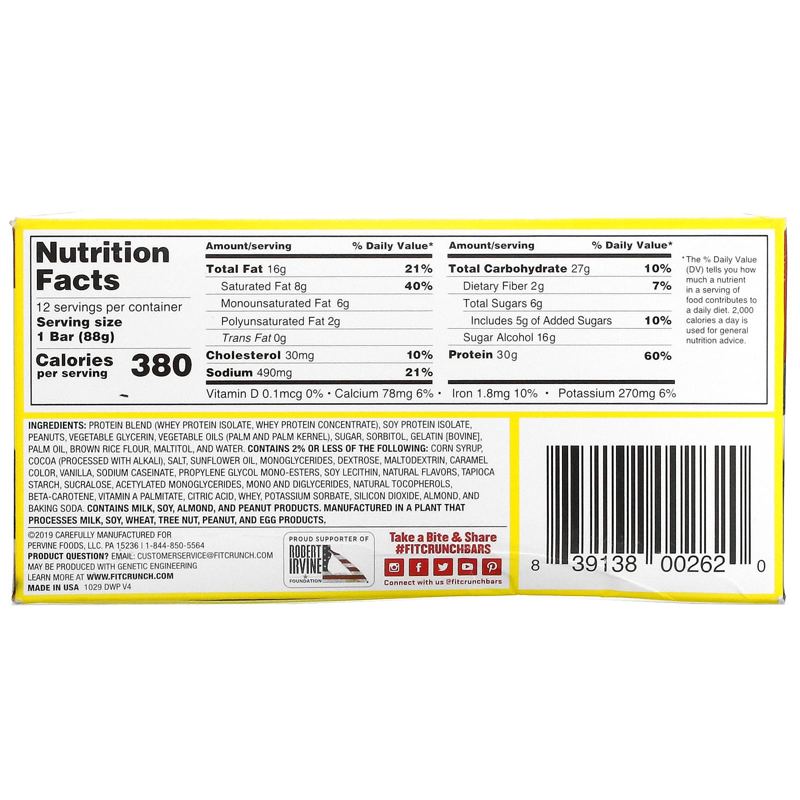 FITCRUNCH, батончик с термообработанным сывороточным протеином, арахисовой пастой и фруктовым джемом, 12 батончиков по 88 г (3,10 унции) каждый