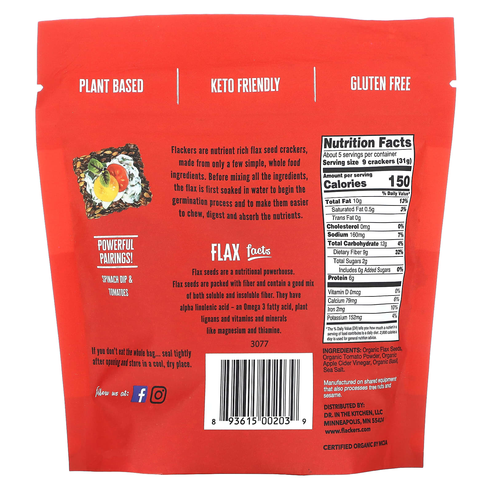 Органические семена льна, порошок из органических томатов, органический яблочный уксус, органический базилик, морская соль.