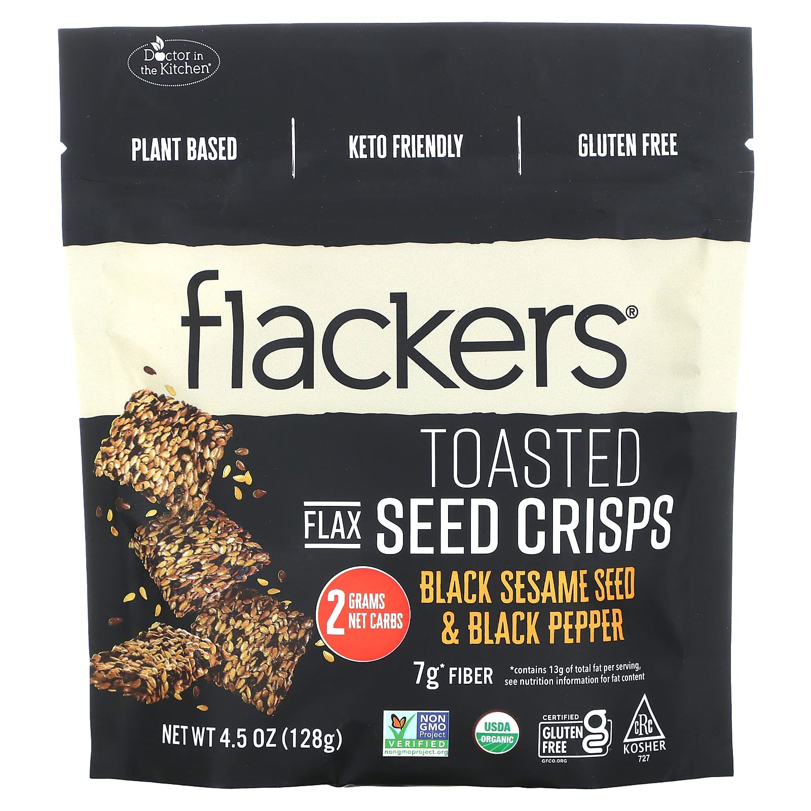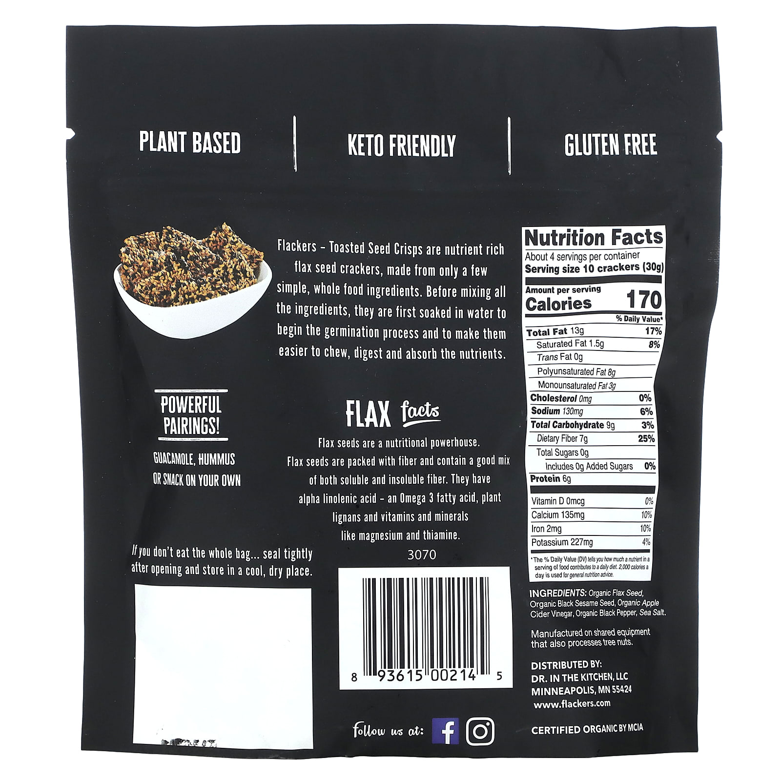 Органическая льняная мука, органические семена черного кунжута, органический яблочный уксус, органический черный перец, морская соль.