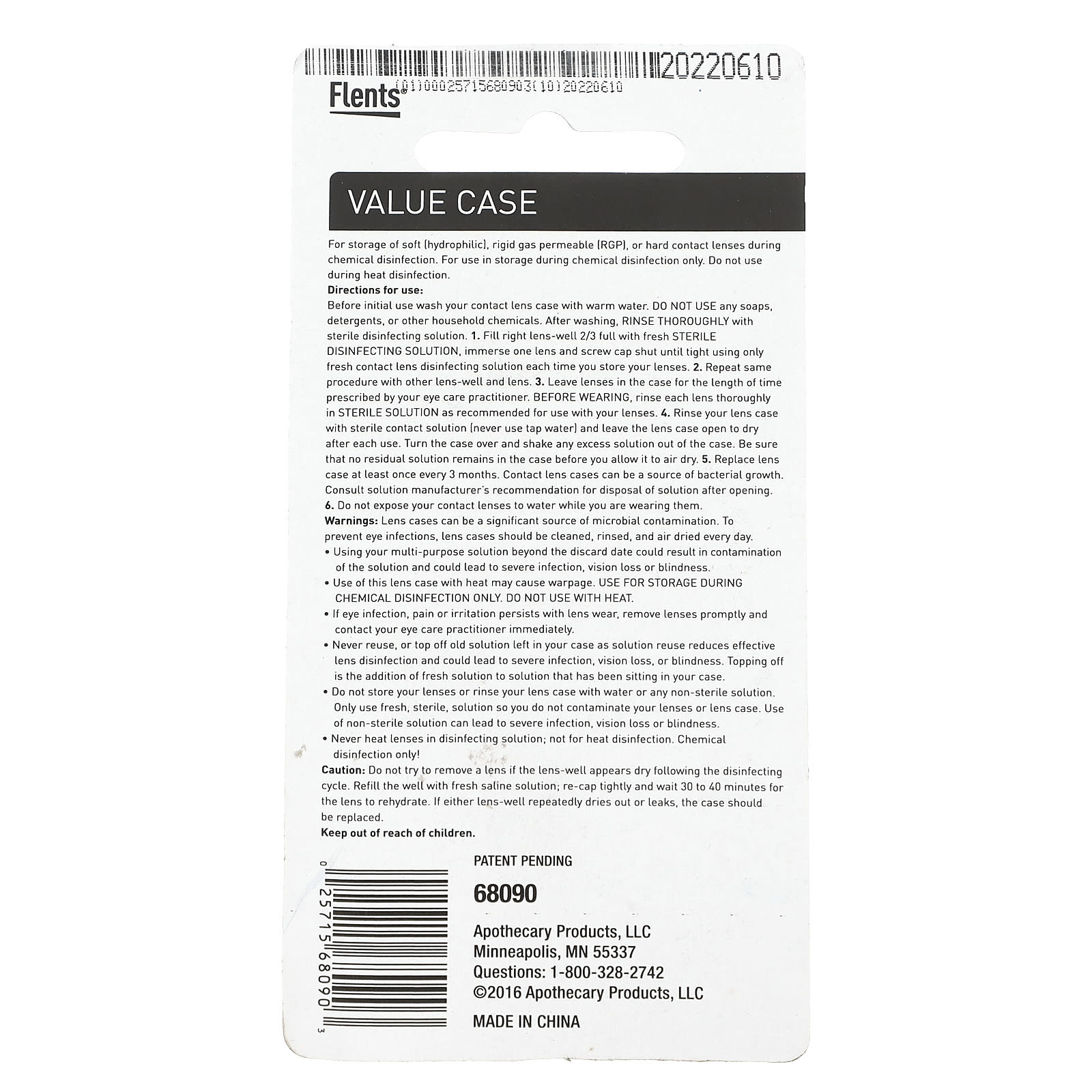 Для хранения мягких (гидрофильных), жестких газопроницаемых (RGP) или жестких контактных линз во время химической стерилизации. Для использования только на складе во время химической стерилизации. Не использовать во время горячей стерилизации.