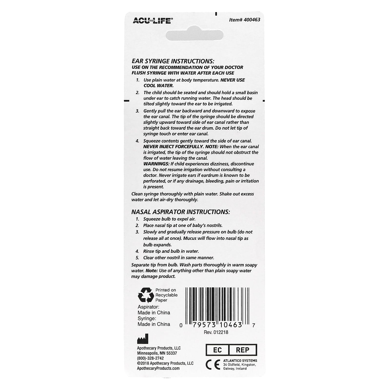 Прекратите использование, если у ребенка возникнет головокружение. Не возобновляйте орошение без консультации врача. Никогда не промывайте уши, если барабанная перепонка повреждена, или присутствуют выделения, кровотечение, боль или раздражение.