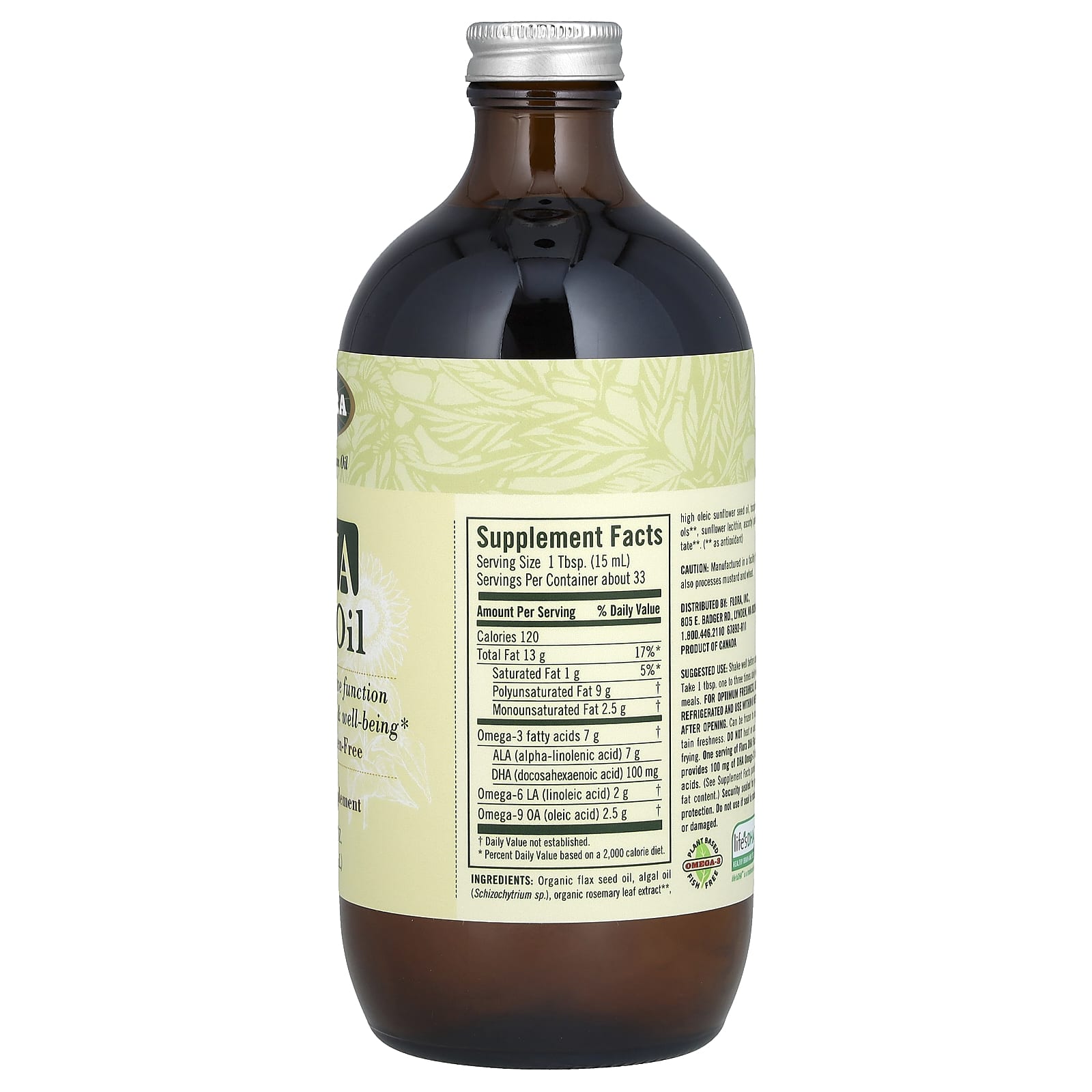Семена отжимаются в ультрасовременной среде с низкой температурой, без света и кислорода, а затем разливаются в светостойкие стеклянные бутылки янтарного цвета для обеспечения максимальной питательной ценности и свежести. Одна порция льняного масла с ДГК от Flora содержит 7 г омега-3 и 2 г незаменимых жирных кислот омега-6 для поддержания крепкого здоровья.