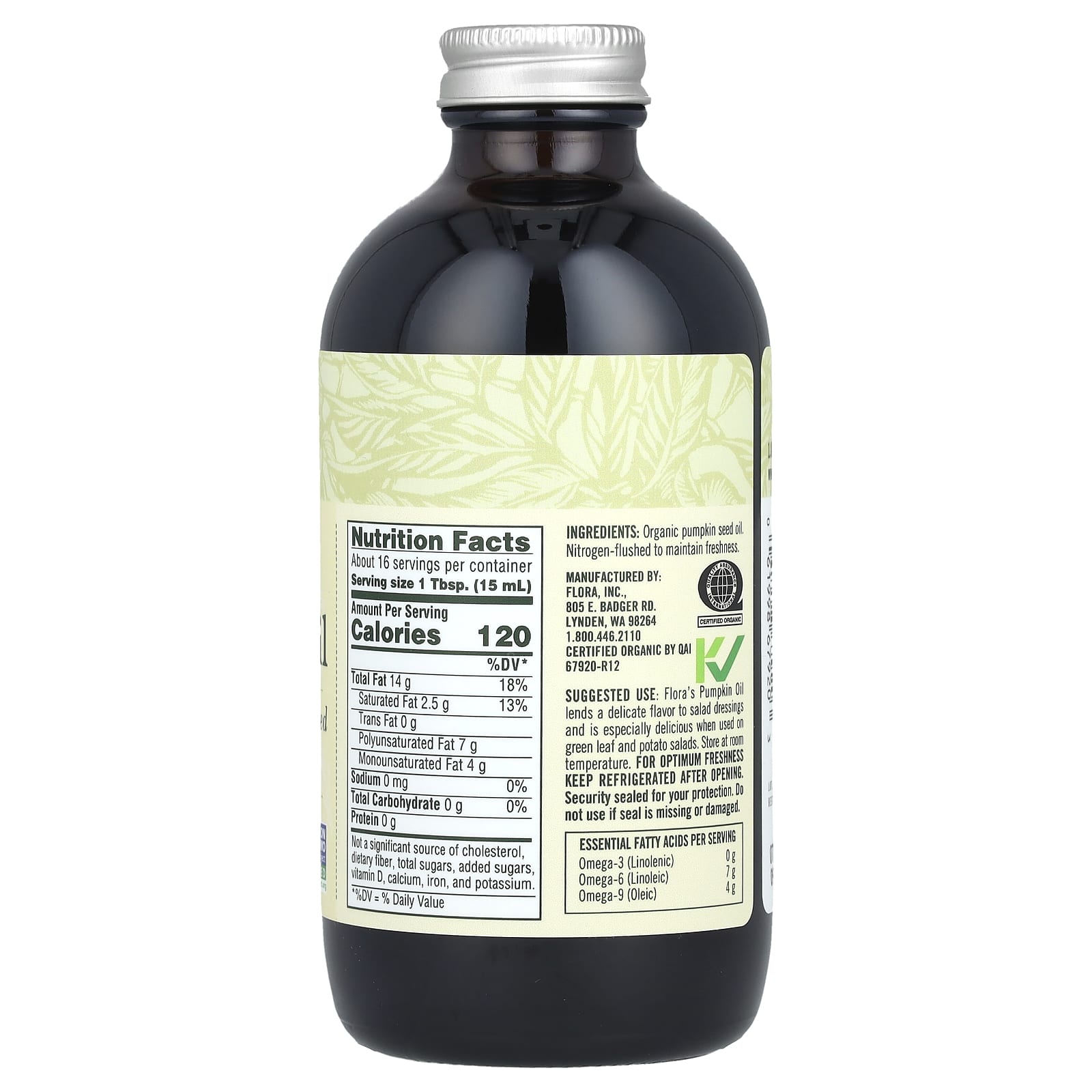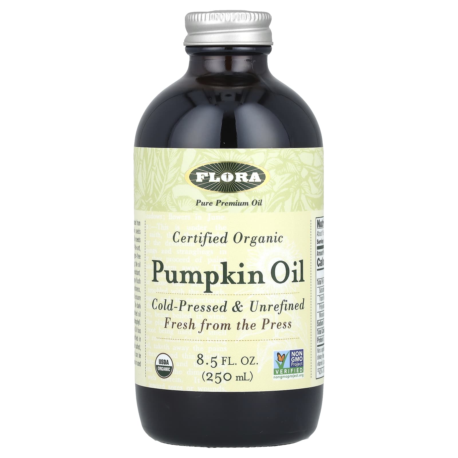 Тыквенное масло Flora производится из сертифицированных органических семян тыквы (сертификация сторонней организацией). Семена отжимаются в современной среде с низкой температурой, без света и кислорода. После отжима масло бережно разливают по бутылкам в светостойкое янтарное стеклянное покрытие со струей азота для сохранения свежести и максимальной пищевой ценности, а также для предотвращения окисления. Темный цвет этого натурального нерафинированного масла указывает на высокое содержание хлорофилла. Нерафинированное тыквенное масло от Flora имеет сертификат Non-GMO Project Verified, чтобы обеспечить вам самое безопасное масло с лучшим вкусом. Его можно принимать непосредственно для приема внутрь или использовать для приготовления пищи.