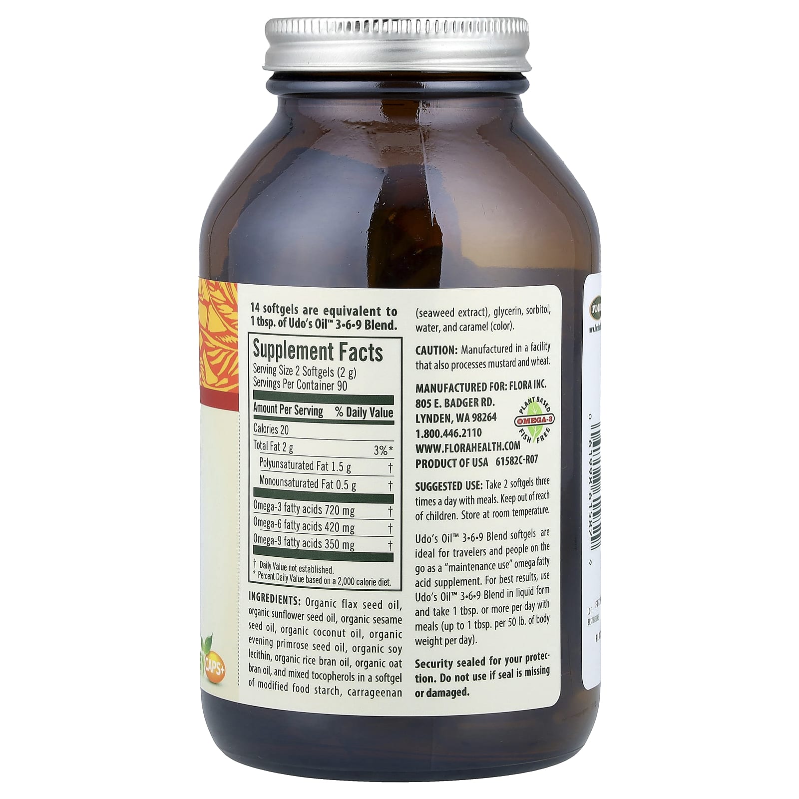 Flora, Udo's Choice®, Udo's Oil™, смесь 3, 6, 9, 180 вегетарианских капсул