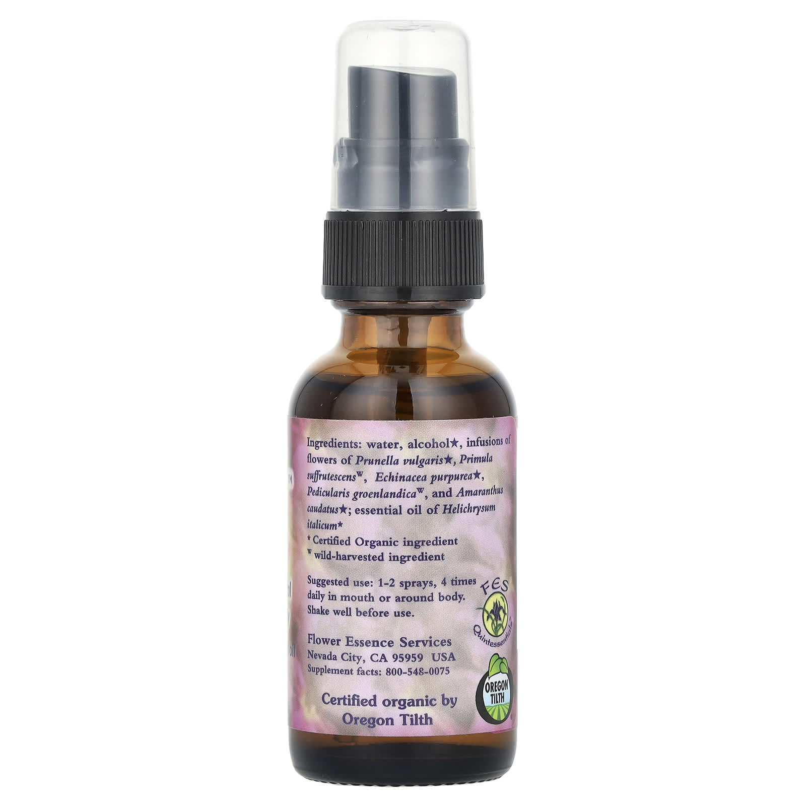 Вода, спирт*, настои цветков черноголовки обыкновенной* (Prunella vulgaris), первоцвета кустарничкового (Primula suffrutescens)W, эхинацеи пурпурной* (Echinacea purpurea), мытника (Pedicularis groenlandica)W, амаранта хвостатого* (Amaranthus caudatus); эфирное масло бессмертника итальянского* (Helichrysum italicum).