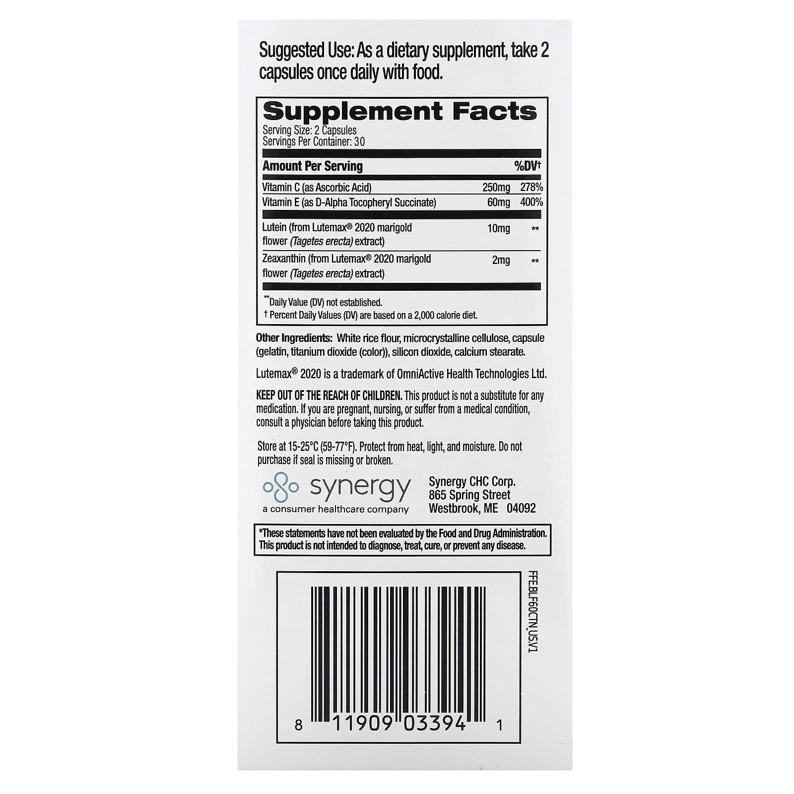Наша формула синего света FOCUSfactor® способствует здоровому зрению, поддерживает способность глаз фильтровать синий свет и помогает уменьшить воздействие яркого света на зрение благодаря особым питательным веществам, таким как лютеин и зеаксантин (в клинически протестированном соотношении 5:1, как Lutemax® 2020). Кроме того, формула содержит ключевые антиоксидантные витамины C и E для общего здоровья глаз.