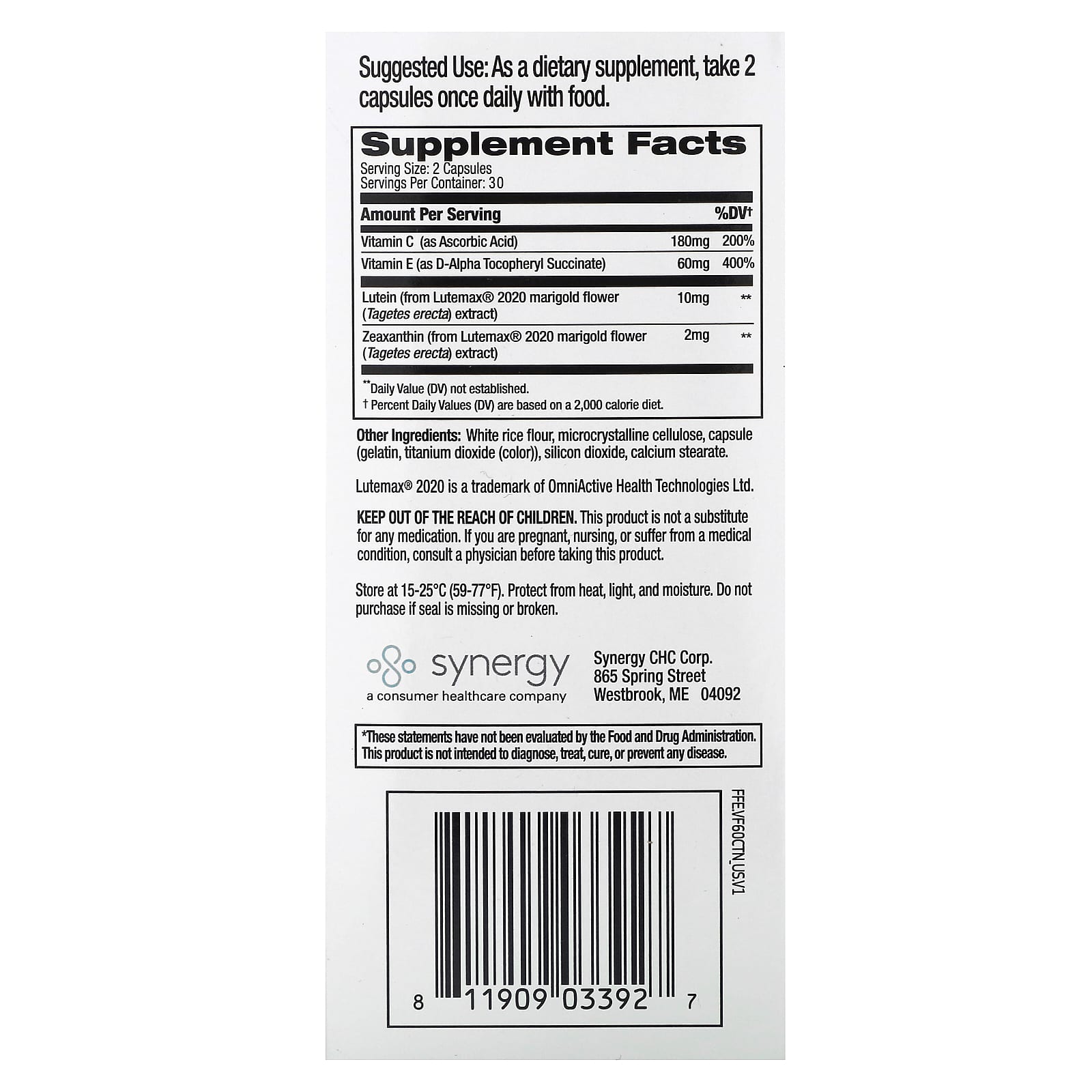 Наша формула для зрения FOCUSfactor® способствует здоровому зрению и поддерживает функцию глаз с помощью специальных питательных веществ, таких как лютеин и зеаксантин (в виде клинически протестированного Lutemax® 2020). Кроме того, формула содержит ключевые антиоксидантные витамины C и E для общего здоровья глаз.