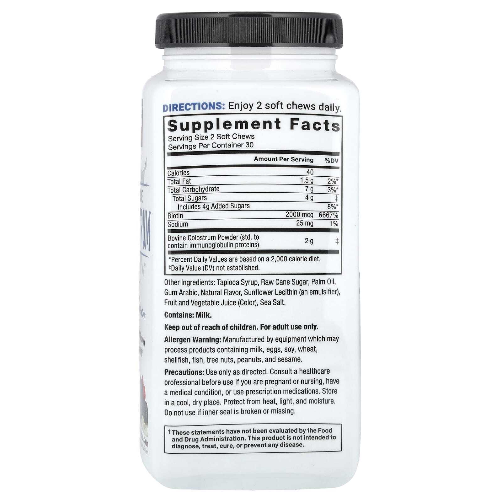 Молозиво - это первый природный источник питания, богатый антителами, которые способствуют здоровому развитию. Awesome Colostrum ™ использует силу этого чуда природы, чтобы помочь вам укрепить иммунитет, здоровье кишечника, выздороветь и многое другое. Каждая вкусная порция содержит 2 г говяжьего молозива премиального качества, обогащенного биотином для поддержания здоровья волос, кожи и ногтей. Эти жевательные таблетки с великолепным вкусом - эффективный и удобный способ выглядеть и чувствовать себя молодее.