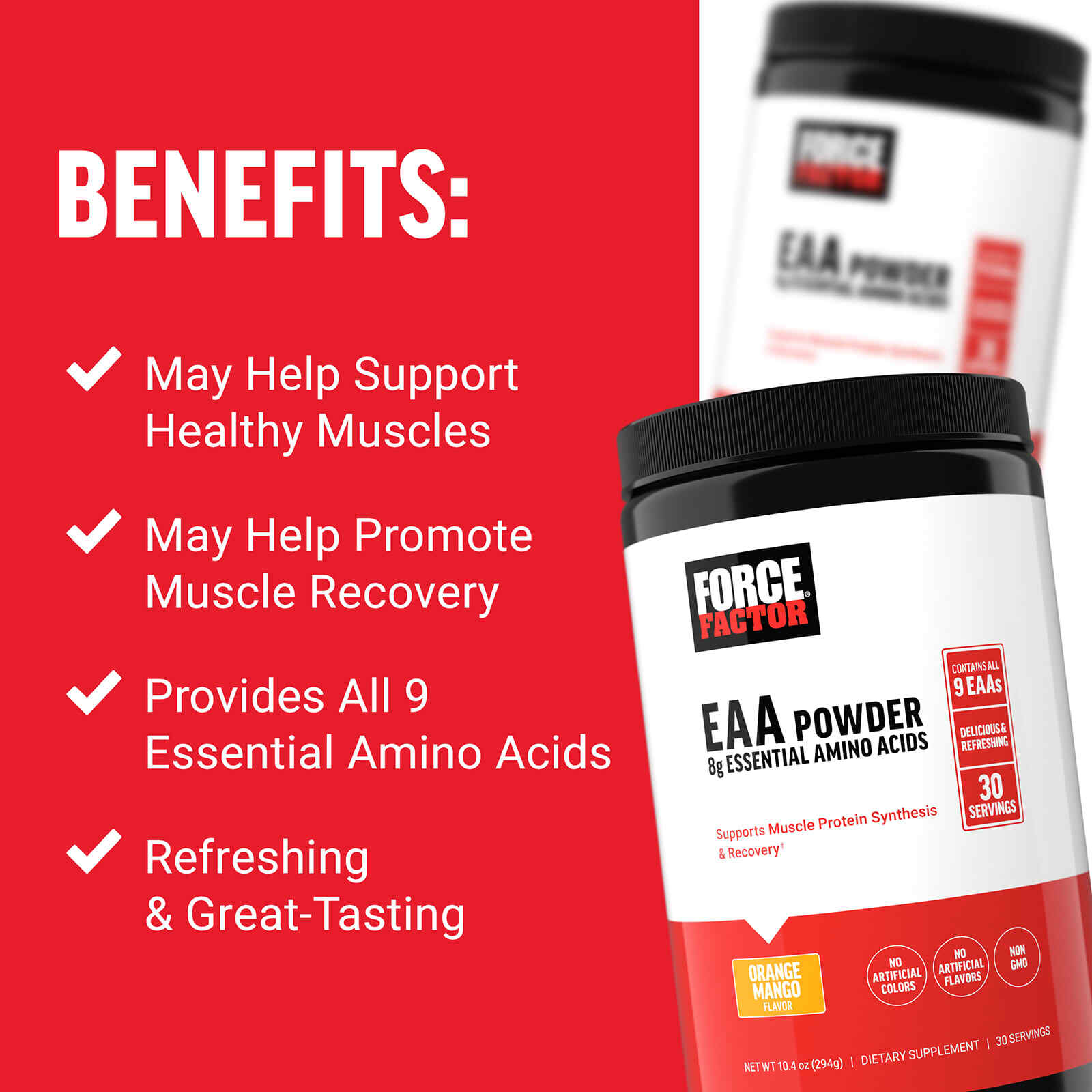 Аминокислоты являются строительными блоками мышц и здоровых суставов. Force Factor® EAA в порошке — идеальная ежедневная добавка для спортсменов и активных взрослых. Каждая мерная ложка, содержащая все девять незаменимых аминокислот, способствует синтезу мышечного белка, способствуя наращиванию сухой мышечной массы, укреплению суставов и ускоренному восстановлению. Пытаетесь ли вы улучшить свое телосложение или стремитесь к максимальной производительности, порошок с EAA от Force Factor поможет вам в этом.